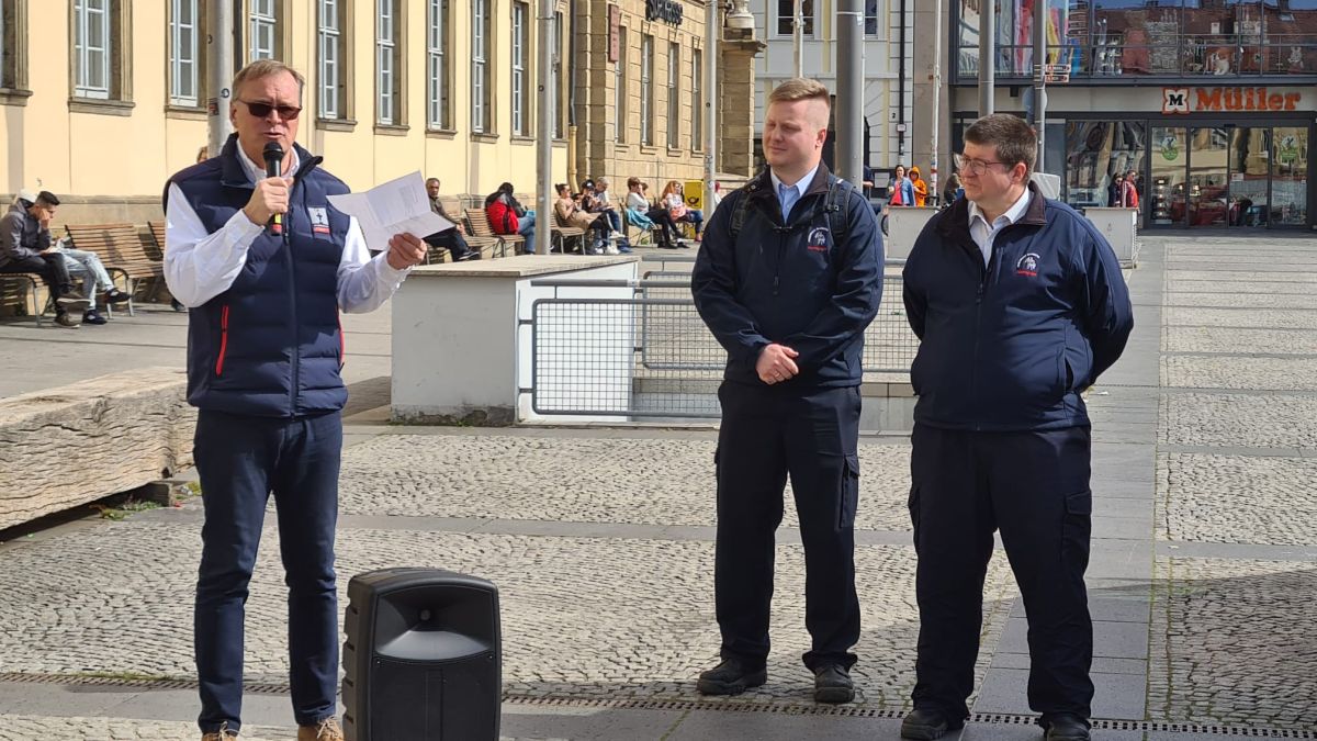 Zum wiederholten Male schlossen sich am letzten Sonntag im März bei schönstem Frühlingswetter einige Bamberger Bürgerinnen und Bürger der „Bamberg on Tour“ mit Oberbürgermeister Andreas Starke durch die Weltkulturerbestadt rund um das Thema Feuerwehr Bamberg, dieses Mal speziell Jugendfeuerwehr Bamberg, an. Bei der Begrüßung am Maxplatz wurden alle Teilnehmer durch Bambergs Oberhaupt Andreas Starke herzlich willkommen geheißen und durch „die beiden Alexanders“, in Person Stadt-Jugendfeuerwehrwart Alexander Wilhelm und dessen Stellvertreter Alexander Ohme, kurz in das Thema eingeführt. Es wurde kurz etwas zur Geschichte der Feuerwehr Bamberg im Allgemeinen und dann zur Gründung der Jugendwehr berichtet.