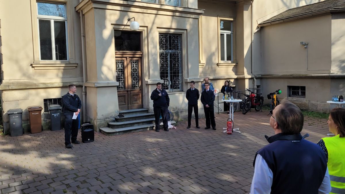 Weiter ging es anschließend zur letzten Station in der Hainstraße im Kellergeschoss der Villa Dessauer zum ehemaligen Jugend-Unterrichtsraum, welcher von Dezember 2019 bis Dezember 2020 zu einem Jugendraum saniert wurde. Nachdem der Raum in die Jahre gekommen war und einen entsprechenden Zustand aufwies, konnte das Gespräch mit der Stadtspitze gesucht und geführt werden. Den Beteiligten war klar: so kann der Raum nicht bleiben und man sagte einer Sanierung zu. Coronabedingt verzögerte sich leider immer wieder die Maßnahme. Dennoch ist der Raum zwischenzeitlich voll nutzbar gemacht worden und bietet einen zwanglosen Rückzugsort für die Jugendlichen. Unterdessen ansprechend eingerichtet bietet der Raum sogar ein kleines Büro für die Ausbilder und die Leitung der Jugendfeuerwehr. Nach Vorstellung des Ablaufs der Sanierungsmaßnahme, konnte der Raum durch die Teilnehmerinnen und Teilnehmer betrachtet werden, während im Freien Getränke auf Spendenbasis bereitstanden. Die Freiwillige Feuerwehr Bamberg bedankt sich bei allen Besuchern und dem Amt für Bürgerbeteiligung, Presse- und Öffentlichkeitsarbeit der Stadt Bamberg für die Organisation.