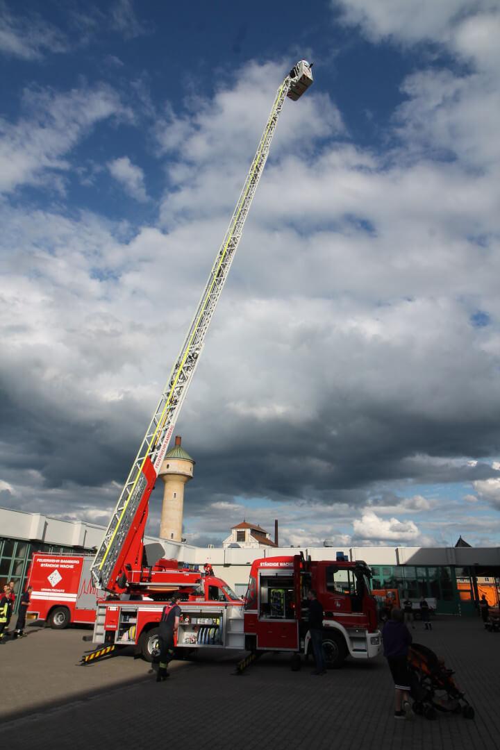 Ausgestattet mit auszugsweise einem sogenannten Gelenkarm, um beispielsweise hinter dem Dachfirst wieder abzusenken, lichtstarken LED-Flutlichtstrahlern, einem 5-Personen-Korb und natürlich in der Beklebung der Feuerwehr Bamberg-CI wurde das neue Fahrzeug von den versammelten Kameradinnen und Kameraden begutachtet und unter die Lupe genommen. Stolz wurde es auch von den frisch eingewiesenen Kameraden der Ständigen Wache vorgeführt.