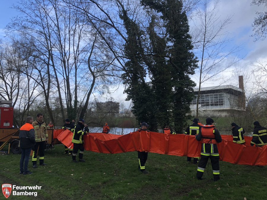 Der Ölwehrzug Stadt Bamberg übt die verschiedenen Aufgaben zwischenjährlich. Immer wieder werden gemeinsame Unterrichte und Übungen abgehalten, um die Thematik weiter zu vertiefen. Aber aufgrund des Schiffverkehrs ist eine solche Großübung nur einmal im Jahr, zeitlich fest definiert, möglich. Ganz gleich welches Wetter herrscht.