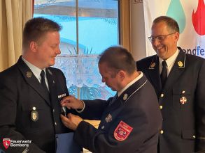 Diese Einsätze für den Erhalt und Förderung der Jugendarbeit belohnte die Jugendfeuerwehr Bayern nun im Rahmen der Delegiertenversammlung. Alexander Ohme nahm die Auszeichnung dankend an und betonte, dass er diese stolz und stellvertretend für alle ehemaligen und derzeit aktiven Jugendlichen der Bamberger Wehr und für Oberfranken tragen werde. Johann Eitzenberger, Vorsitzender des Landesfeuerwehrverbandes Bayern, überreichte ihm die dazugehörige Urkunde.