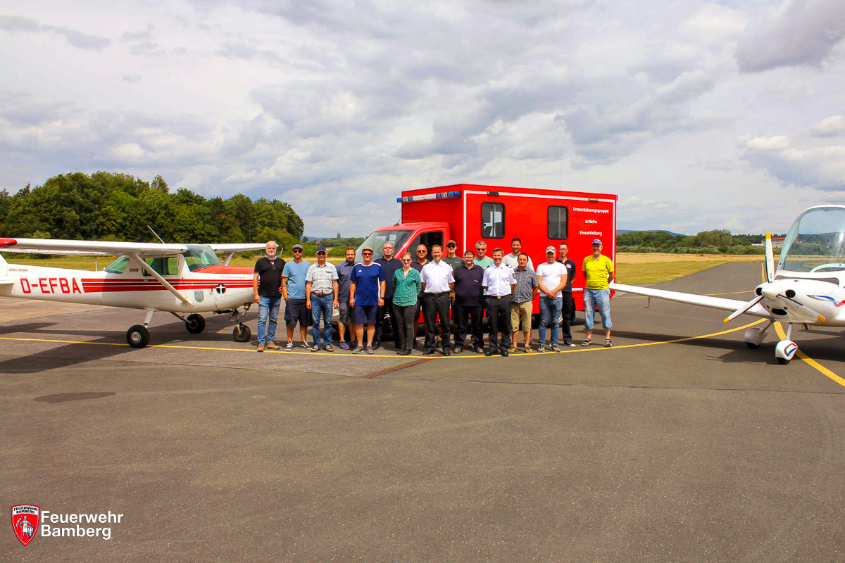 Die Feuerwehr Bamberg bedankt sich bei der Luftrettungsstaffel Bayern – Stützpunkt Bamberg-Breitenau, beim Aero-Club e.V., bei der Kreisbrandinspektion des Landkreises Bamberg, bei den Feuerwehren Hallstadt/Dörfleins und Strullendorf, der UG-ÖEL Bamberg Stadt, sowie bei allen Piloten, Luftbeobachterinnen und –beobachtern und Beteiligten für die Mitwirkung und Unterstützung zur Durchführung der Standortschulung und das eingebrachte Engagement.