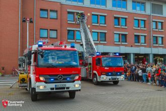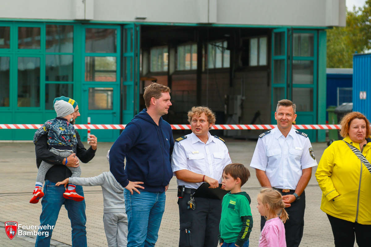 Die Feuerwehr Bamberg bedankt sich besonders beim Kinderschminkteam des Jugendrotkreuzes, bei den Bereitschaften des BRK, bei allen anderen Unterstützerinnen und Unterstützern vor Ort, bei der Metzgerei Kalb, bei Crêpes mit Charme, beim Eismobil La Coppa, bei der Brauerei Kaiserdom und vor allem bei allen Kameradinnen und Kameraden der eigenen Wehr!