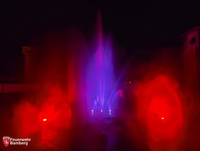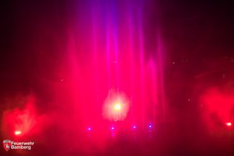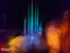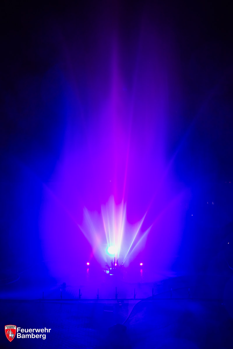 Den Abschluss der Veranstaltung machten die mit viel Mühe vorbereiteten Wasserspiele. Bekannt aus Wildensorg hielten diese nun im Innenhof der Ständigen Wache Einzug. Eindrucksvoll und musikalisch untermalt schossen die mit Lichteffekten hinterlegten Fontänen in die Höhe. Mit Ende der Wasservorführung endete auch in strahlend bunter Atmosphäre ein spannender und gelungener Tag. Stadtbrandrat Florian Kaiser, Amtsleiter Christian Seitz und Organisator Stadtbrandmeister Maximilian Lengel resümierten noch am Abend: „Wir sind überwältigt vom Interesse der Besucherinnen und Besucher und stolz auf unsere Kameradinnen und Kameraden sowie Mitarbeiterinnen und Mitarbeitern. Die Bürgerinnen und Bürger dürfen sich auch in Zukunft auf ähnliche Veranstaltungen freuen.“