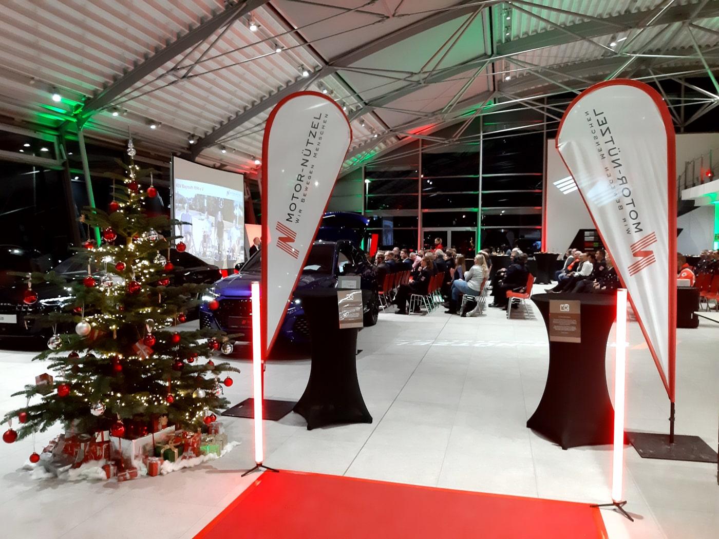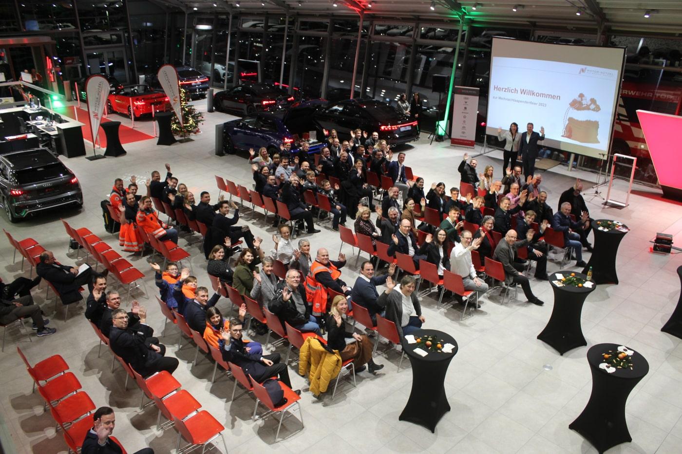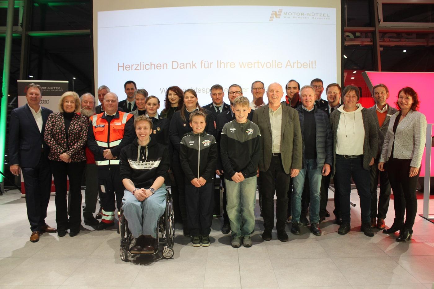 Für die Spendenübergabe waren am 30. November rund 70 Ehrenamtliche zu der begleitenden Abendveranstaltung ins Volkswagenzentrum Bayreuth gekommen. „Herzlichen Dank, dass ihr euch das ganze Jahr über aufopfert“, lobte Motor-Nützel Geschäftsführer Michael Krasser die Anwesenden. Das sei keinesfalls selbstverständlich und verdiene Anerkennung sowie mehr Sichtbarkeit. Die Abendveranstaltung solle ein Stück Wertschätzung ausdrücken.