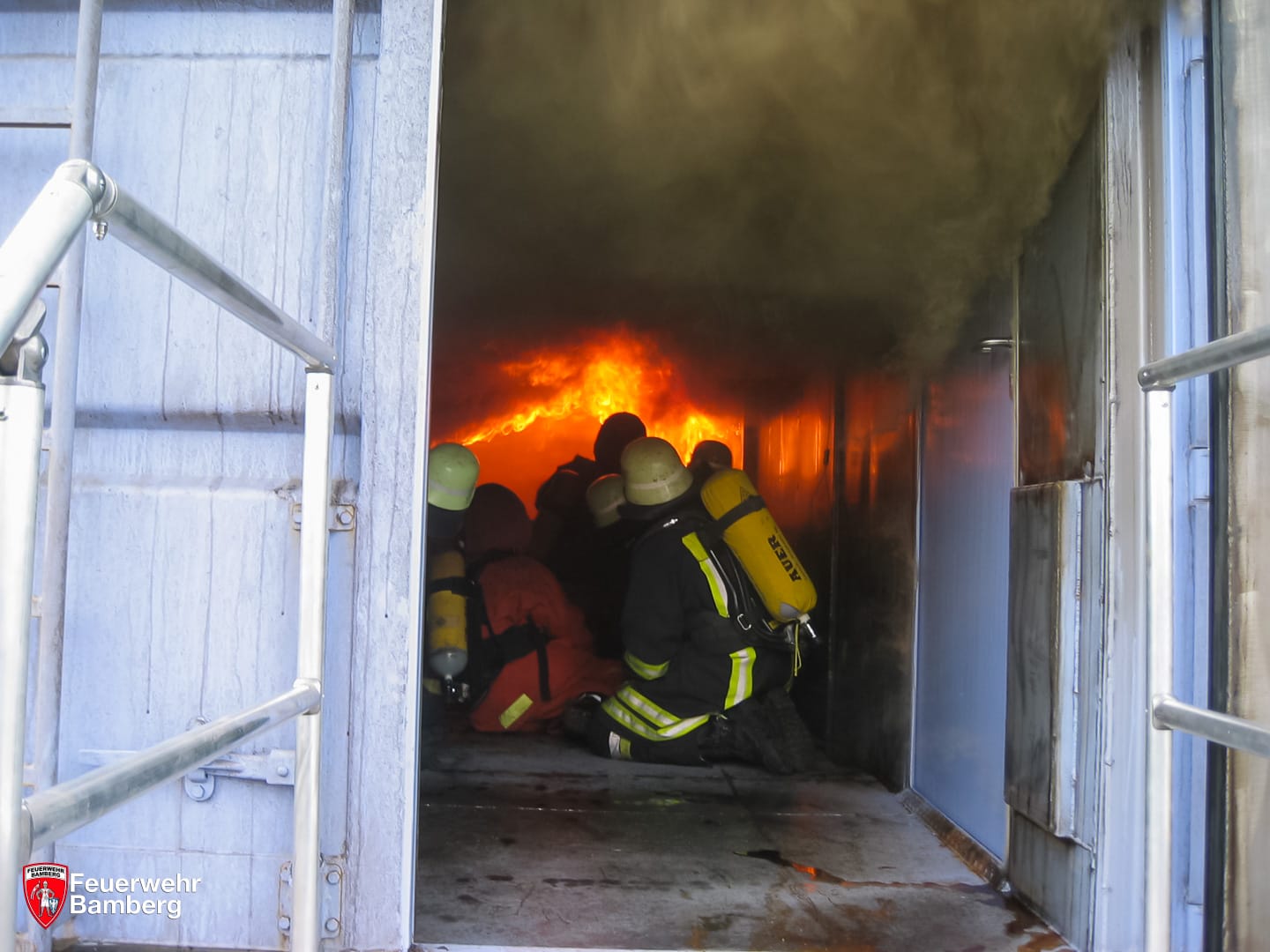 Bei über 600° übt die Feuerwehr Bamberg für den Ernstfall