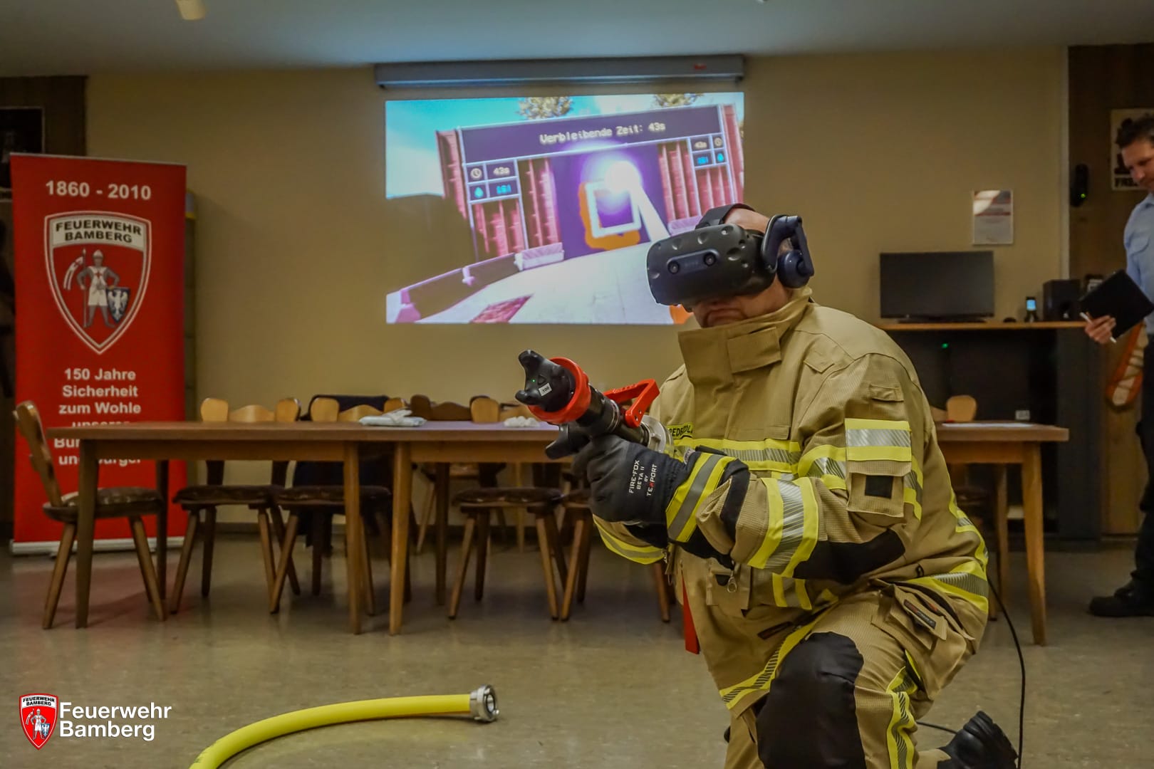 Durch ein modernes VR-System kann ein nahezu müheloser Übungsdurchgang jederzeit angetreten werden. Möglich macht dies der Freistaat Bayern, welcher nun VR-Systeme für die Feuerwehren der kreisfreien Städte und Landkreise beschafft hat. Ausgegeben wurden diese hoch modernen Systeme bereits im Frühjahr 2024. Aufgrund des neuen Weges der Ausbildung, musste das System in einem Probebetrieb detailliert betrachtet und unter den Bamberger Ausbildern besprochen werden. Schließlich möchte man diese brandneue Methode auch richtig verstehen und umsetzen können.