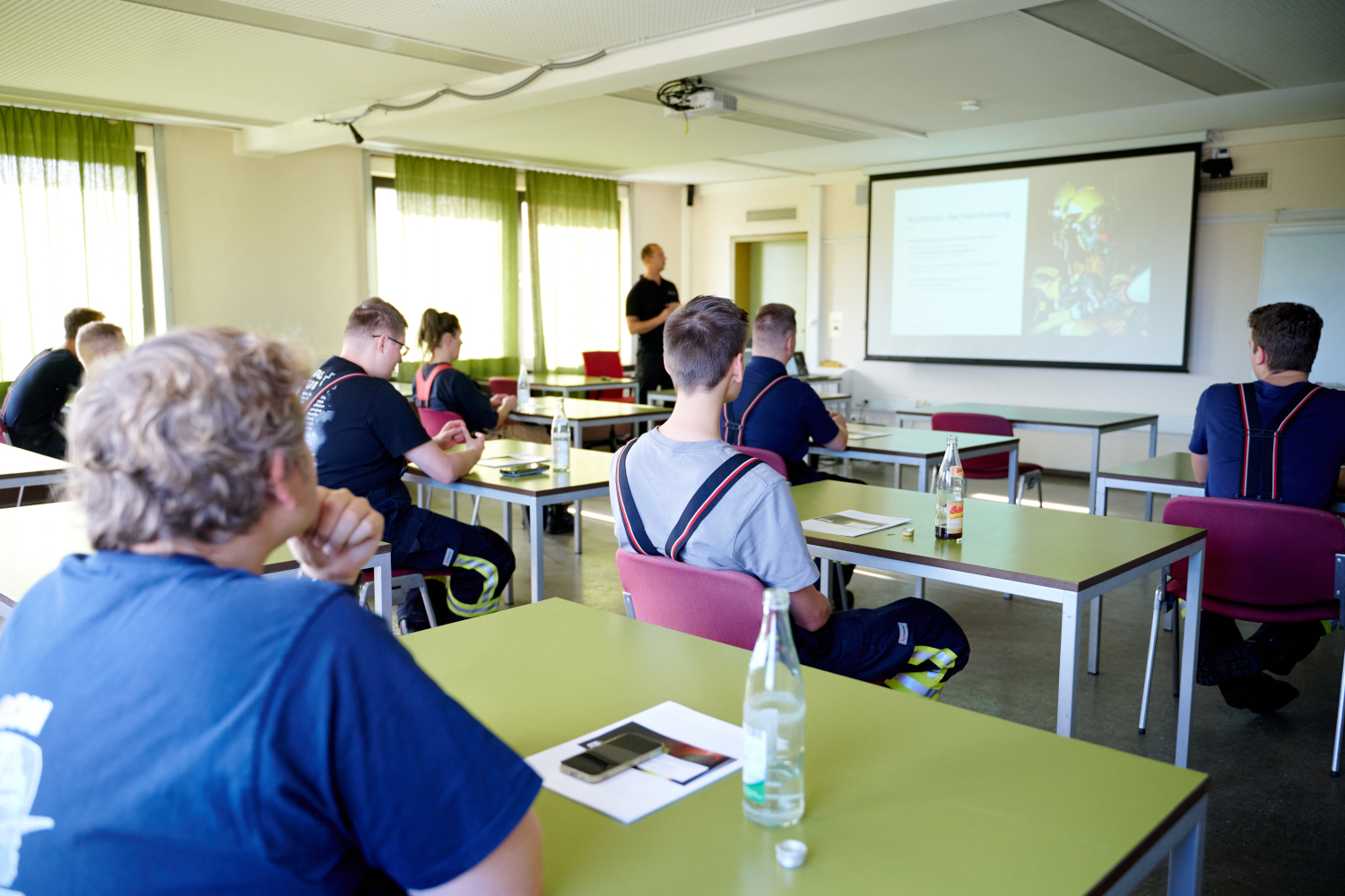 Begonnen hat ein jeder Durchgang mit einer theoretischen Einweisung. Wie verhält man sich im Brandraum? Wie gehe ich einsatztaktisch vor? Wieviel Wassereinsatz ist wirklich notwendig? All diese Fragen und Weitere konnten in diesem Block beantwortet werden, bevor es in die praktische Ausbildung ging.