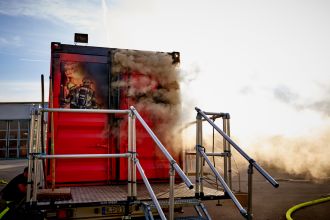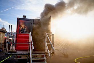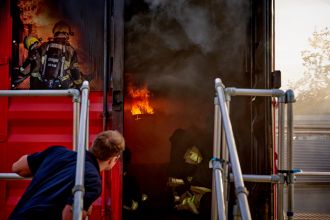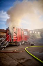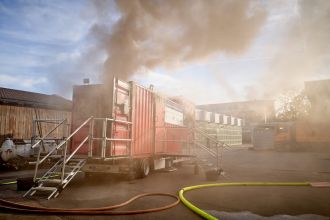 Brandcontainer bringt Feuerwehrleute ins Schwitzen