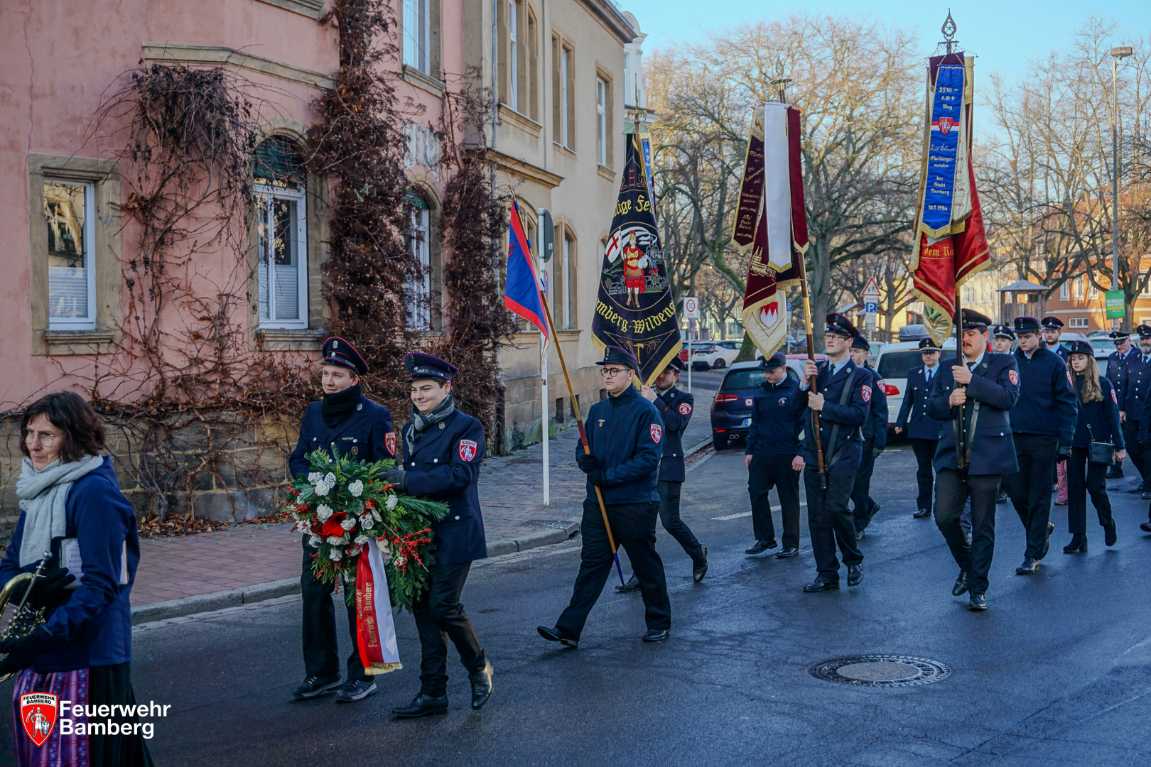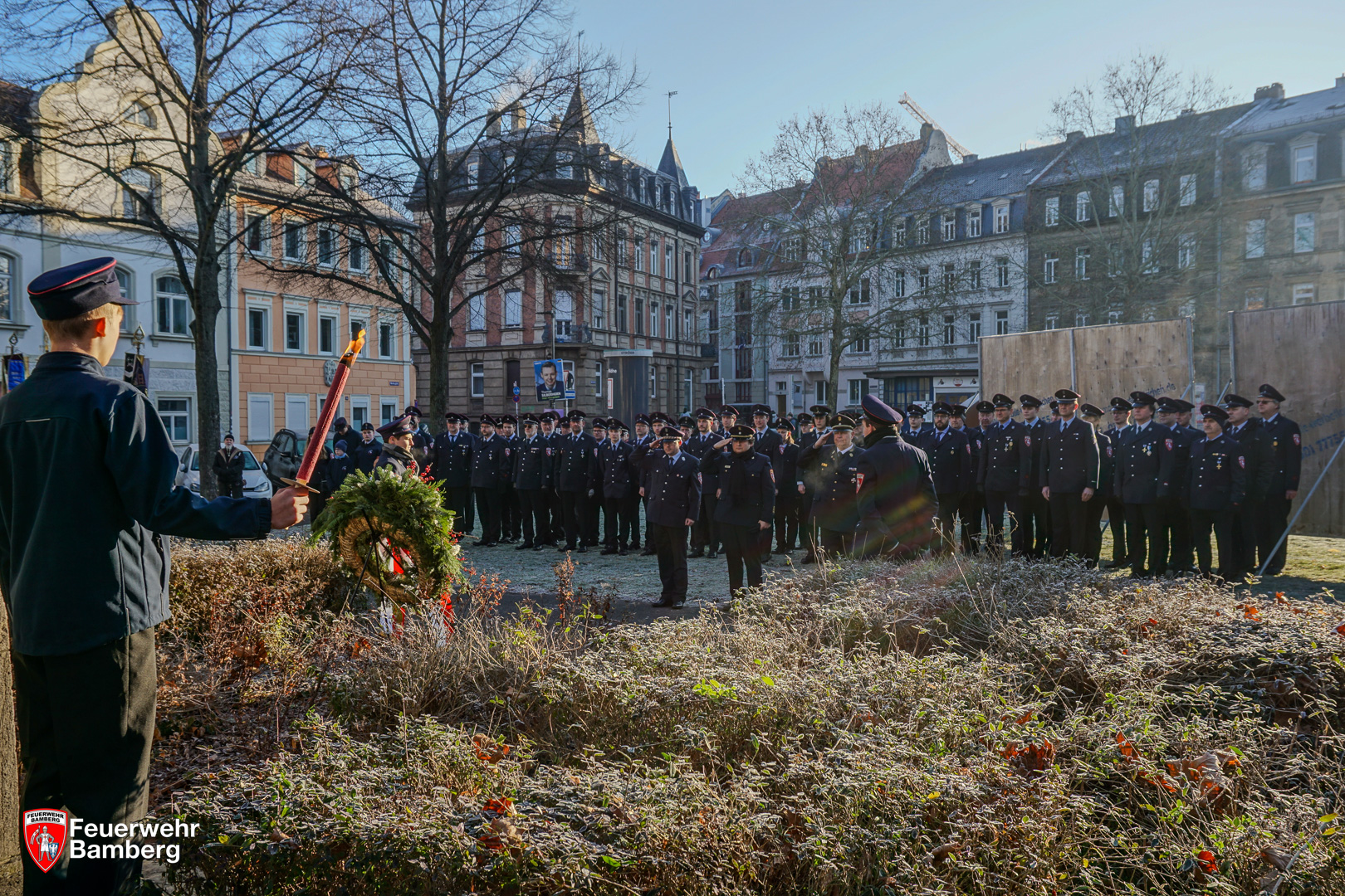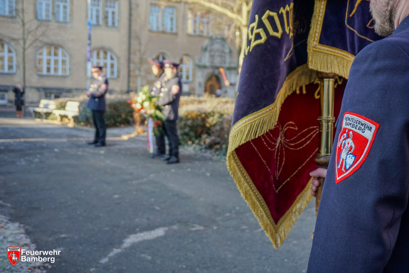 Nach einer würdigenden Ansprache des Vorsitzenden Michael Zopf wurden die Namen der im letzten Jahr Verstorbenen verlesen. Sie alle hatten sich, wie viele in den Generationen zuvor, in ganz unterschiedlicher Weise für die Feuerwehr Bamberg eingesetzt und ihr Können eingebracht. Als äußeres Zeichen des Dankes wurde ein Kranz in den Farben unserer Feuerwehr niedergelegt.