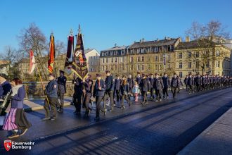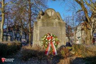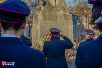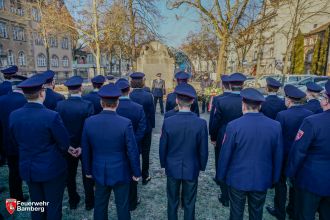 Am Sonntagmorgen des 19. Januars fand das jährliche Totengedenken der Feuerwehr Bamberg statt. Diese Veranstaltung ist für zahlreiche Mitglieder der Bamberger Wehr ein fester Bestandteil des Feuerwehrkalenders. Nach einem kurzen Marsch wurde am Ehrenmal für die gefallenen, vermissten und verstorbenen Kameradinnen und Kameraden am Markusplatz angetreten. Dieses Jahr erfolgte das Antreten – recht untypisch – zwischen zwei großen Wahlwerbeplakaten: „Ein kurzer Ausflug nach Berlin“.