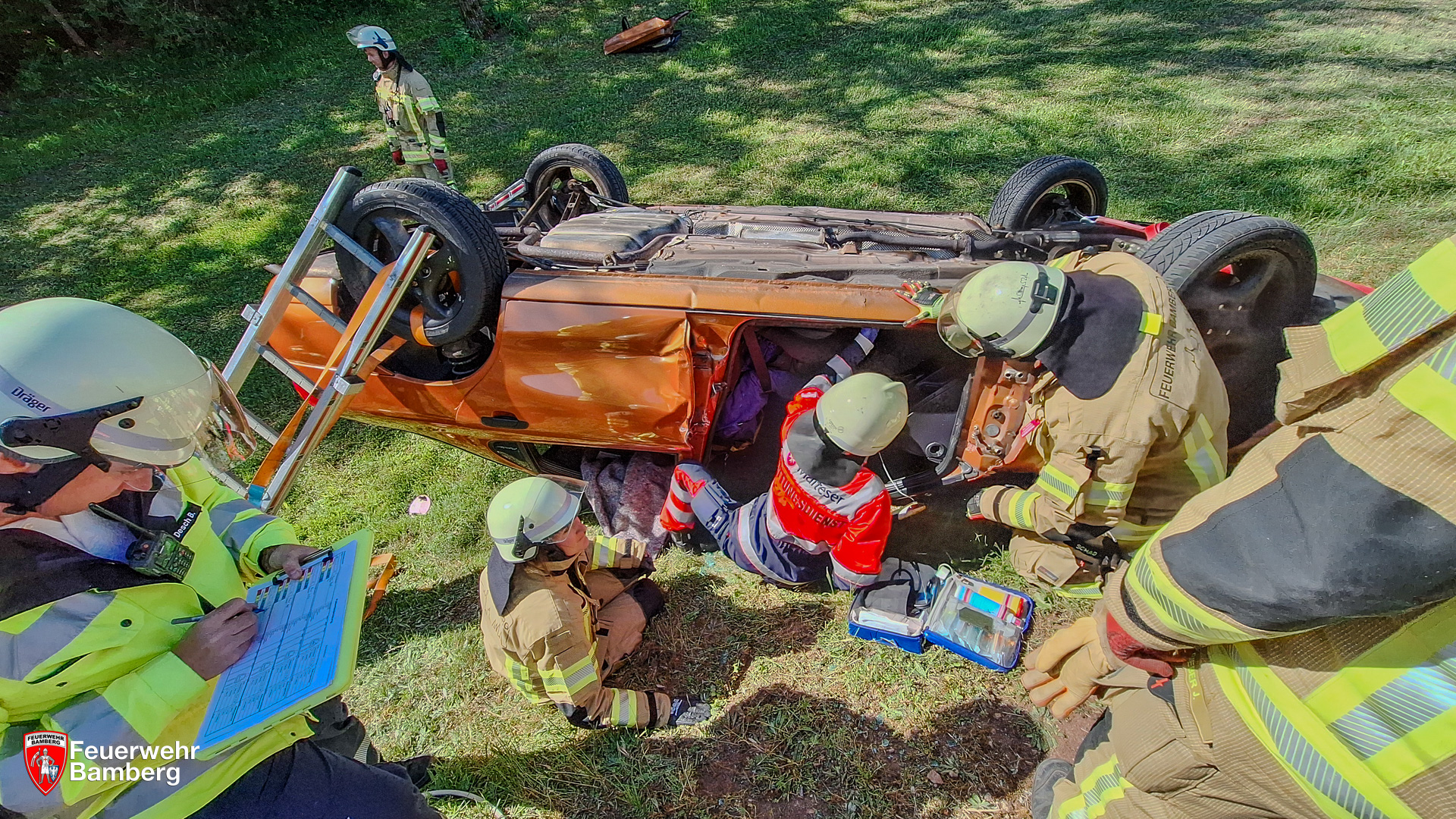 Das simulierte Szenario war sehr realistisch gestaltet: Drei PKWs waren in einen schweren Unfall verwickelt. Beim Eintreffen der Einsatzkräfte rauchte bereits eines der Fahrzeuge stark, in dem zwei Personen eingeschlossen waren. Ein weiteres Fahrzeug lag auf der Seite, mit einer eingeklemmten Person, während ein drittes Fahrzeug auf dem Dach liegend an einem Abhang zum Stillstand kam – auch hier mussten die Einsatzkräfte eine eingeklemmte Person befreien. Zusätzlich stellte ein Linienbus, der durch eine Vollbremsung mehrere Verletzte aufwies, eine weitere Herausforderung dar. Insgesamt acht Verletzte mit unterschiedlichen Verletzungsmustern galt es zu versorgen.