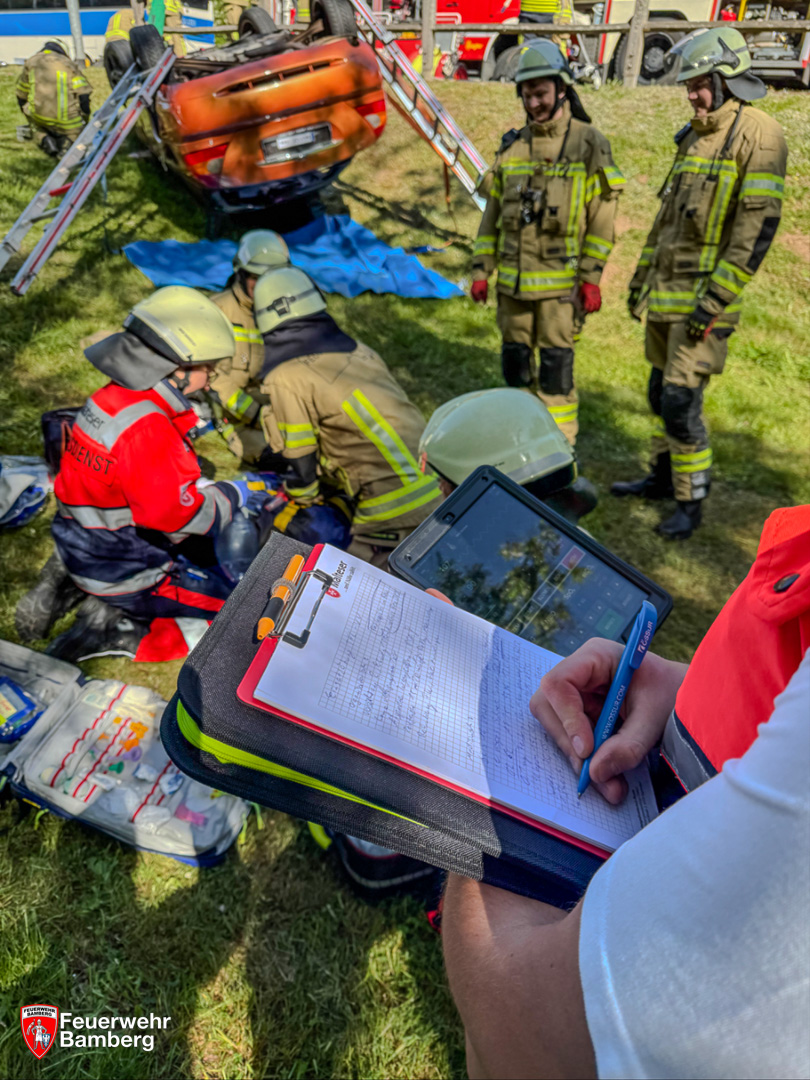 Am Samstagvormittag, den 24.05.2025 fand auf dem Gelände der Bundespolizei in Bamberg eine groß angelegte Einsatzübung statt. Durch die Bundespolizei und den Fachbereich 3 - Aus- und Fortbildung der Feuerwehr Bamberg wurde in enger Zusammenarbeit ein Szenario erarbeitet mit dem Ziel, parallele Einsatzmaßnahmen darzustellen und die Zusammenarbeit zwischen Feuerwehr und Rettungsdienst zu stärken.