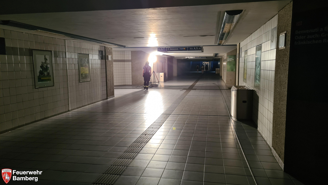 Die komplette Beleuchtung und Anzeigetafeln funktionierten nicht mehr. Im Tunnel zu den Bahnsteigen herrschte nahezu komplette Dunkelheit. Um Unfälle oder Notzustände bei den Betroffenen zu vermeiden, wurde die Löschgruppe 4 angefordert, um eine Beleuchtung in den Gleisunterführungen aufzubauen.
