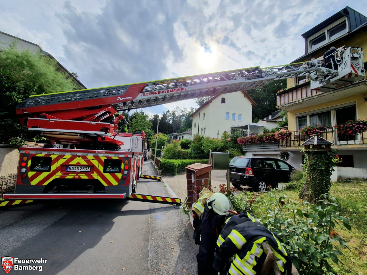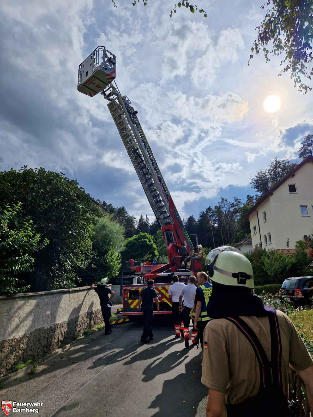 Die Feuerwehr Bamberg wurde am Nachmittag nach Bug zu einer Drehleiterrettung alarmiert.