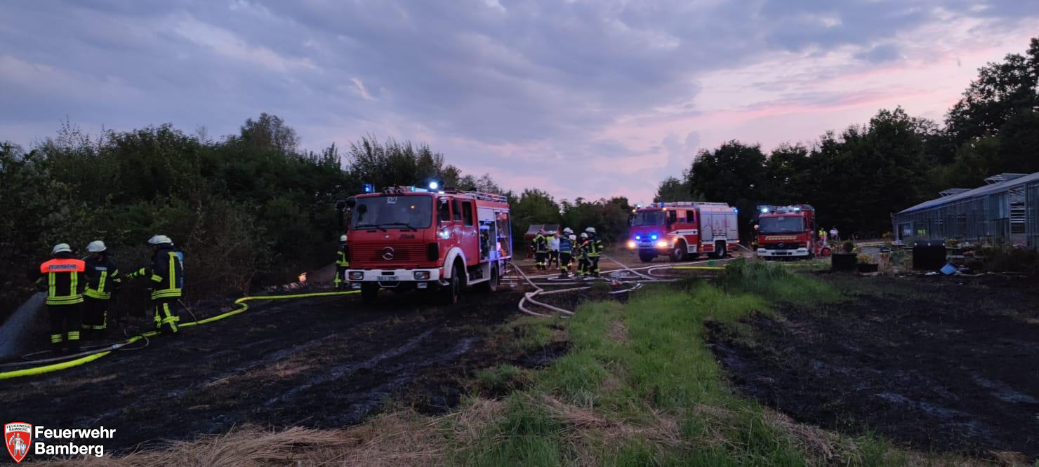 Zunächst war bei einer Gärtnerei eine starke Rauchentwicklung festgestellt worden. Daraus resultierte ein Flächenbrand, der sich rasch ausbreitete.