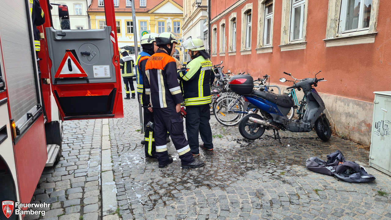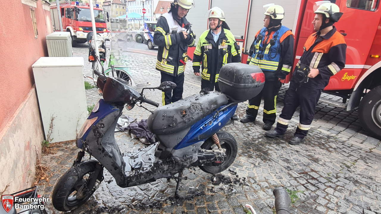 Die Feuerwehr Bamberg wurde gegen Mittag zum Kranen zum Brand eines Motorrollers alarmiert.