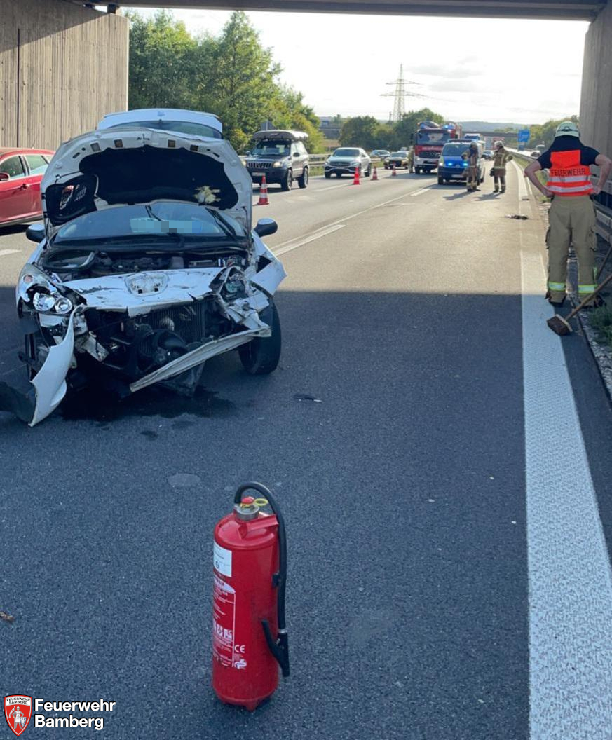 Die Feuerwehr Bamberg wurde am Abend auf die A70 zur Anschlussstelle Hallstadt zu einem Verkehrsunfall alarmiert. Ein Verkehrsteilnehmer meldete den Unfall mit mehreren Fahrzeugen mit zunächst unklarer Lage. Letztendlich konnten sich alle Unfallbeiligten aus den Fahrzeugen befreien, einer hiervon musste aufgrund seiner Verletzungen rettungsdienstlich behandelt werden.