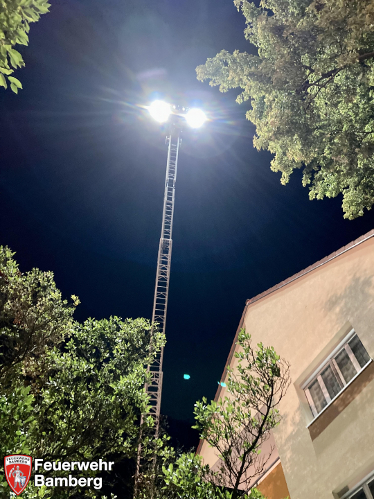 Die Kameraden der Ständigen Wache brachten ihre Drehleiter in Stellung und retteten so 11 Personen, darunter ein Kind plus eine Katze, über die Drehleiter. Einer Person war es aufgrund der körperlichen Verfassung nicht möglich in den Korb zu steigen und wurde als letztes durch das nunmehr rauchfreie Treppenhaus zu den anderen ins Freie gebracht. Für sie wurden durch die Stadtwerke Bamberg ein Linienbus als Aufenthaltsraum bereitgestellt.