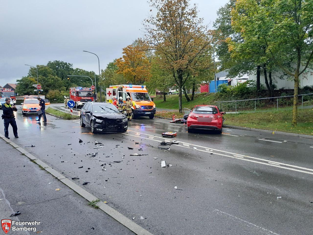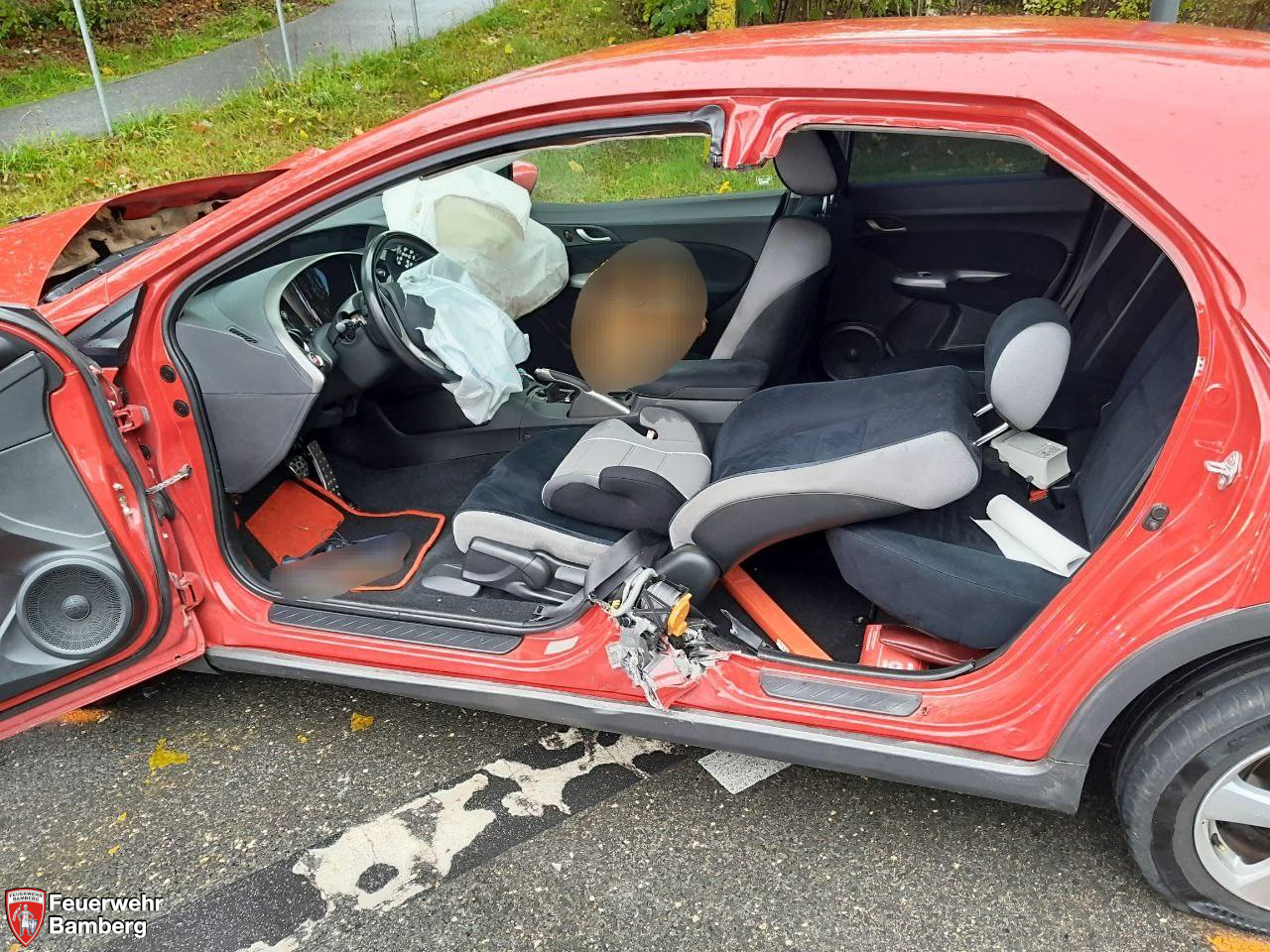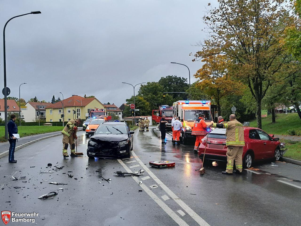 Insgesamt mussten fünf Personen aus beiden Fahrzeugen rettungsdienstlich betreut werden und wurden ins Klinikum Bamberg eingeliefert.