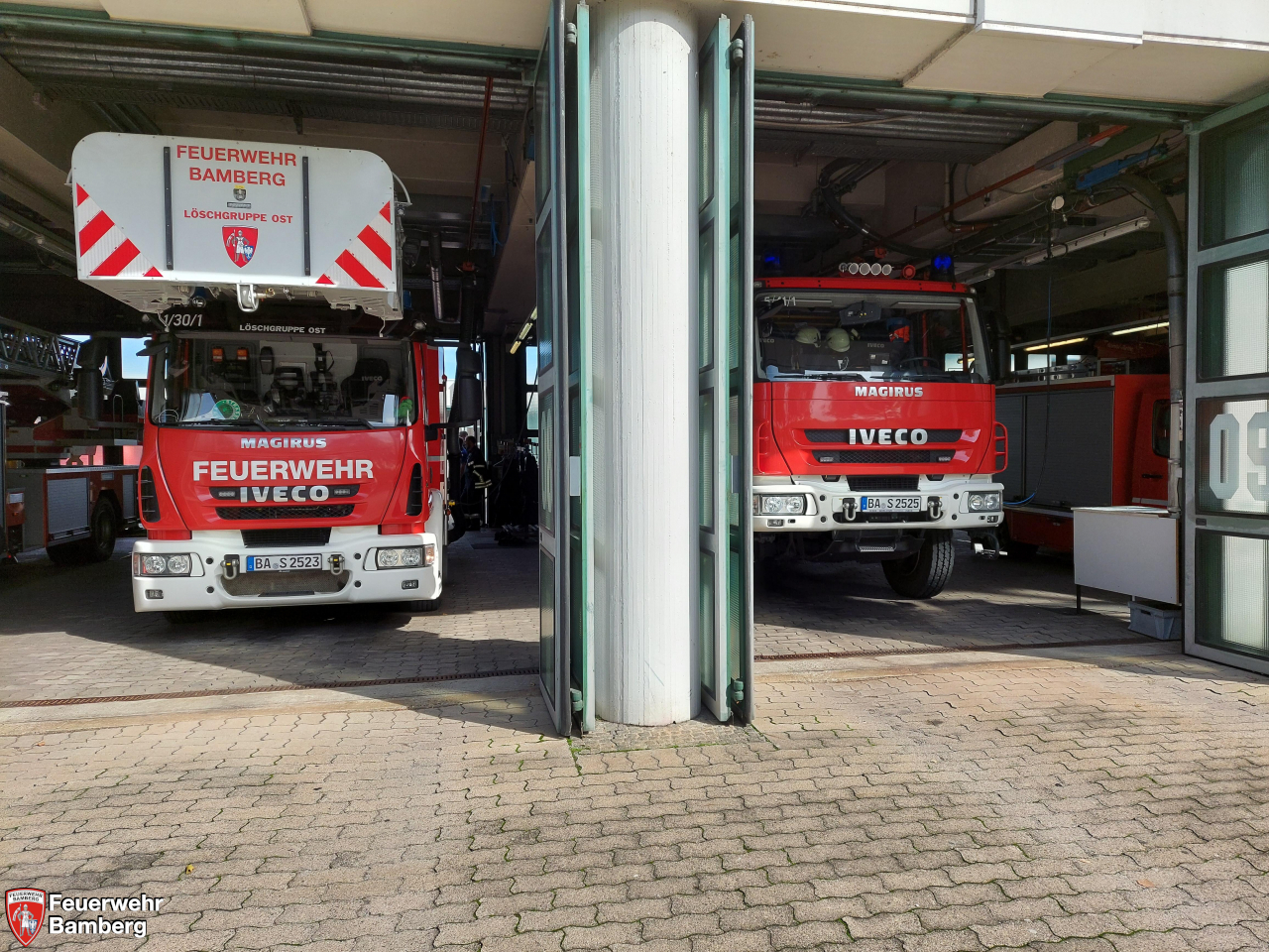 Während ein Teil der Feuerwehr Bamberg, unter anderem die Ständige Wache, bei einem Gasaustritt in der Geyerswörthstraße gebunden war, wurden die Löschgruppe 5/6 mit der Drehleiter der Löschgruppe 1 zur Wachbesetzung alarmiert.