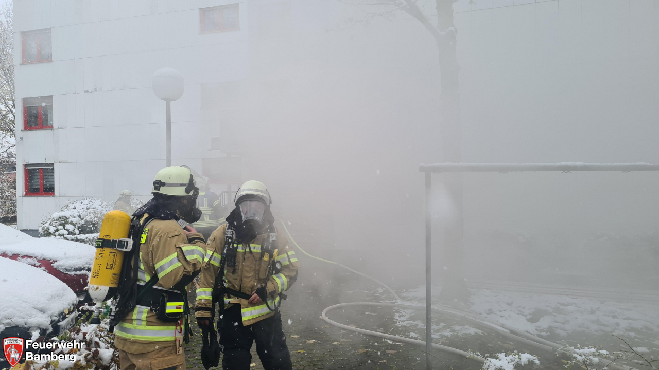 Mit Hilfe der Polizei und unter Androhung von Zwang gelang es einem Atemschutztrupp, die Person aus der Gefahrenzone ins Freie zu bringen. Sie wurde rettungsdienstlich versorgt und kam mit einer Rauchgasintoxikation ins Klinikum Bamberg.