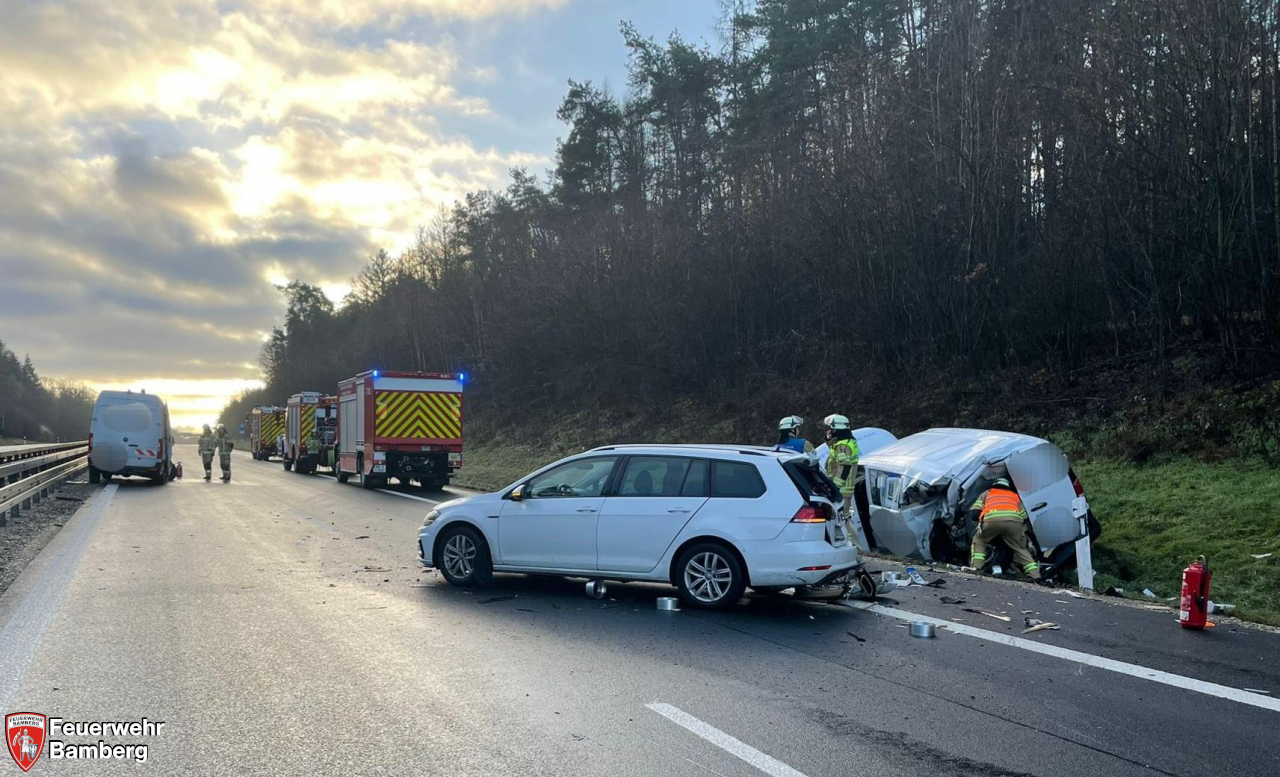 Am Vormittag wurde die Feuerwehr Bamberg zu einem Verkehrsunfall mit mehreren beteiligten Fahrzeugen und, in Folge dessen, Verletzten alarmiert.