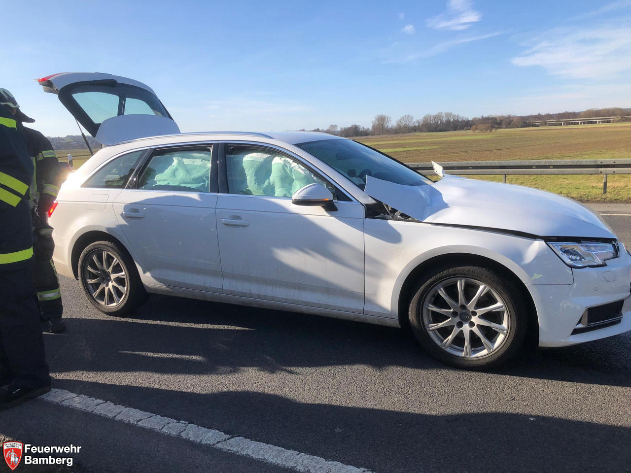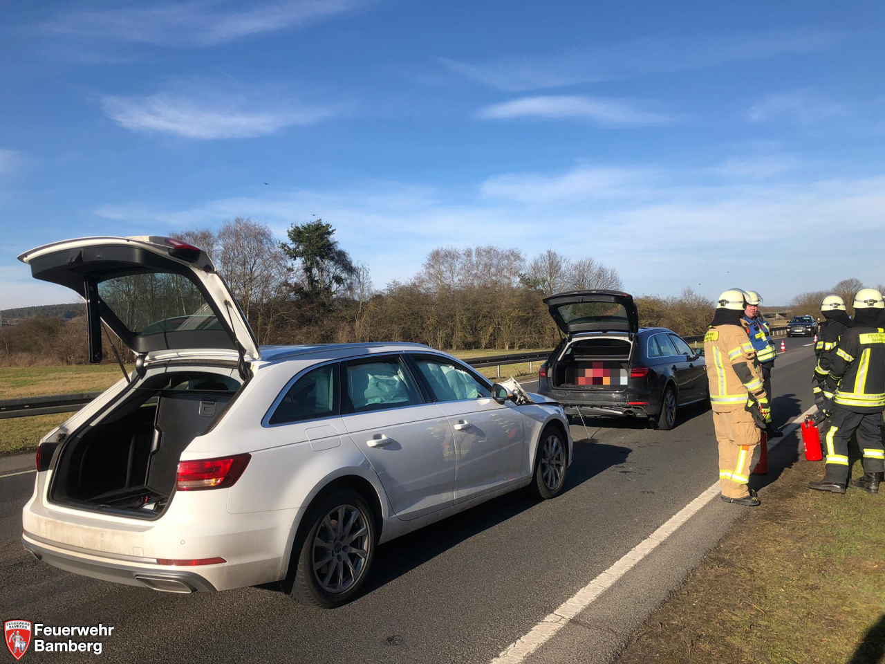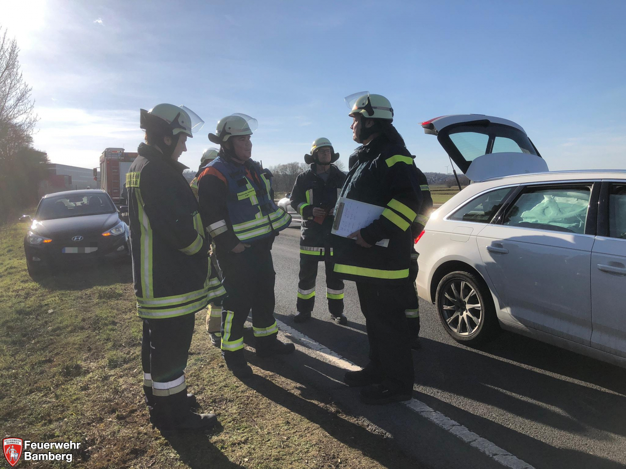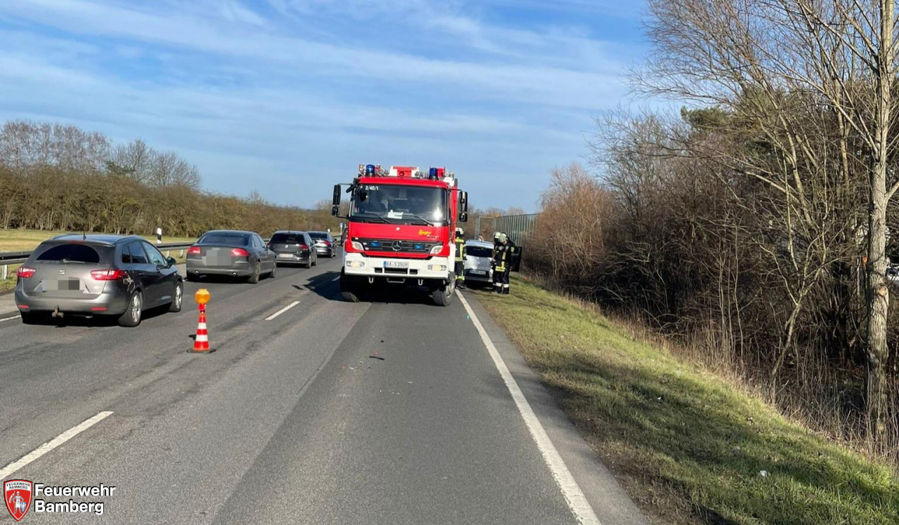 Am Nachmittag wurde die Feuerwehr Bamberg nochmals zu einem Verkehrsunfall mit eCall alarmiert. Diesmal ging es Richtung Bischberg auf die B26. Da die Ständige Wache bereits in einem Einsatz gebunden war, wurde direkt die Löschgruppe 3 und Löschgruppe 4 alarmiert. Wieder kam mit den Verunfallten kein Sprachkontakt zustande und ein Personenschaden wurde angenommen.