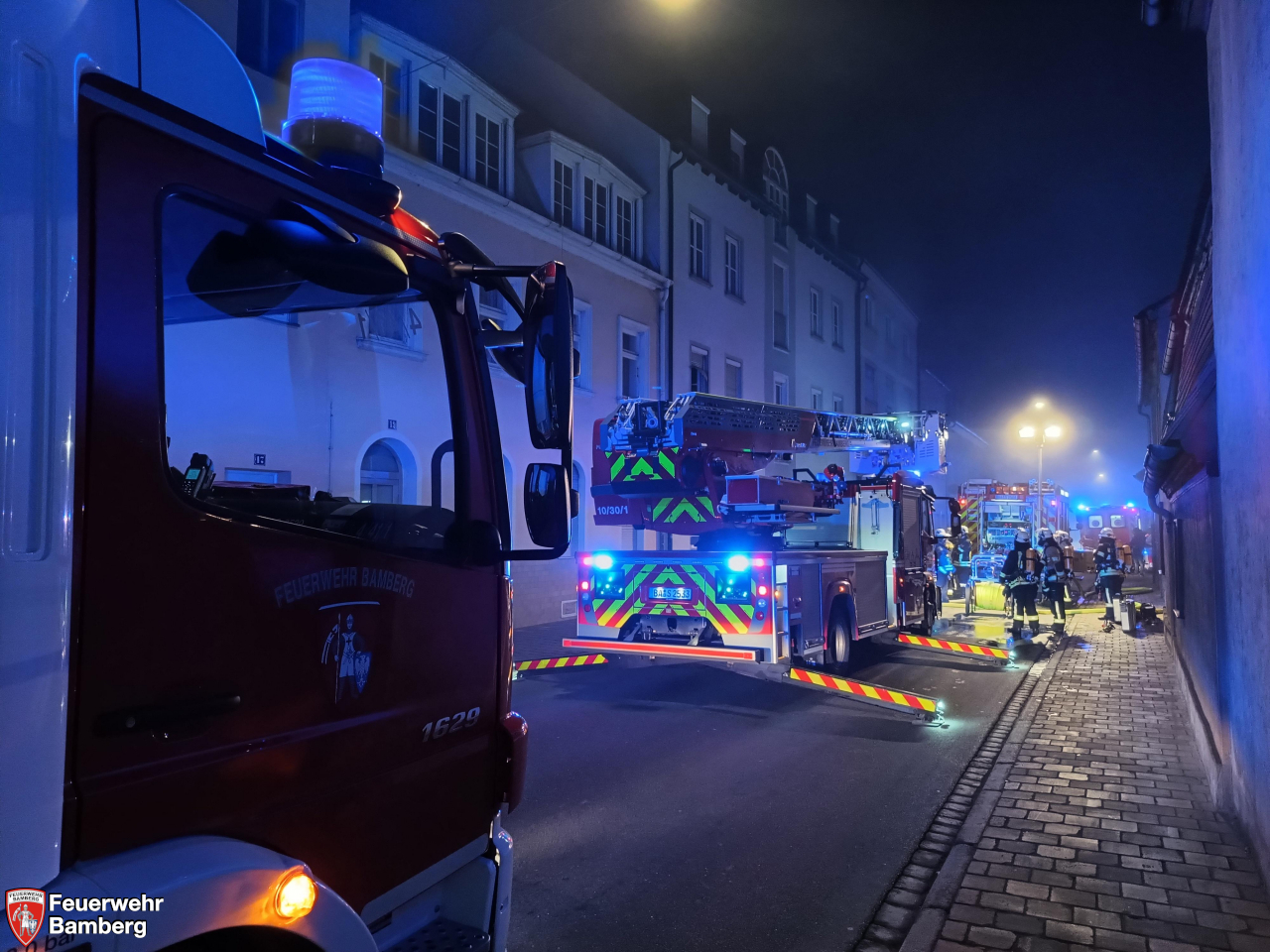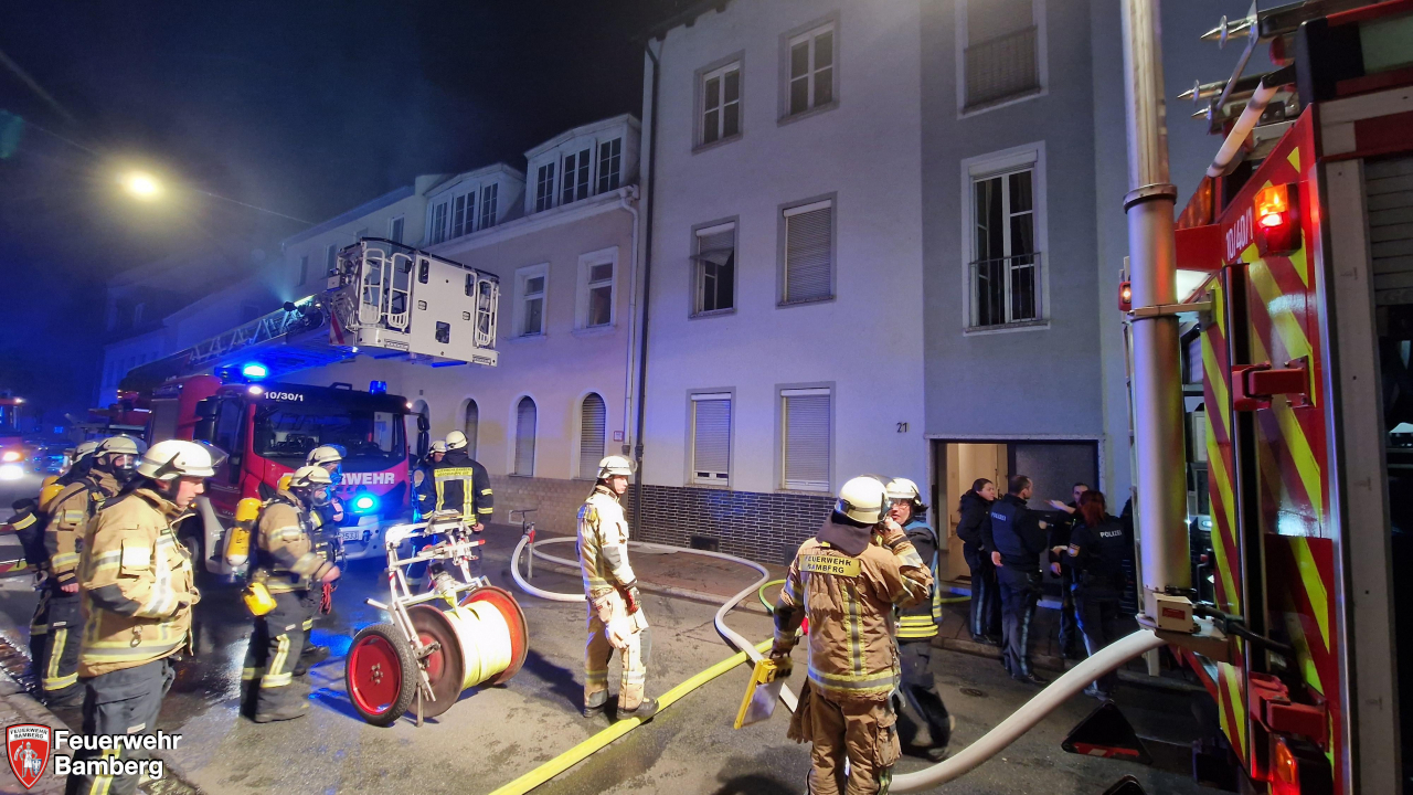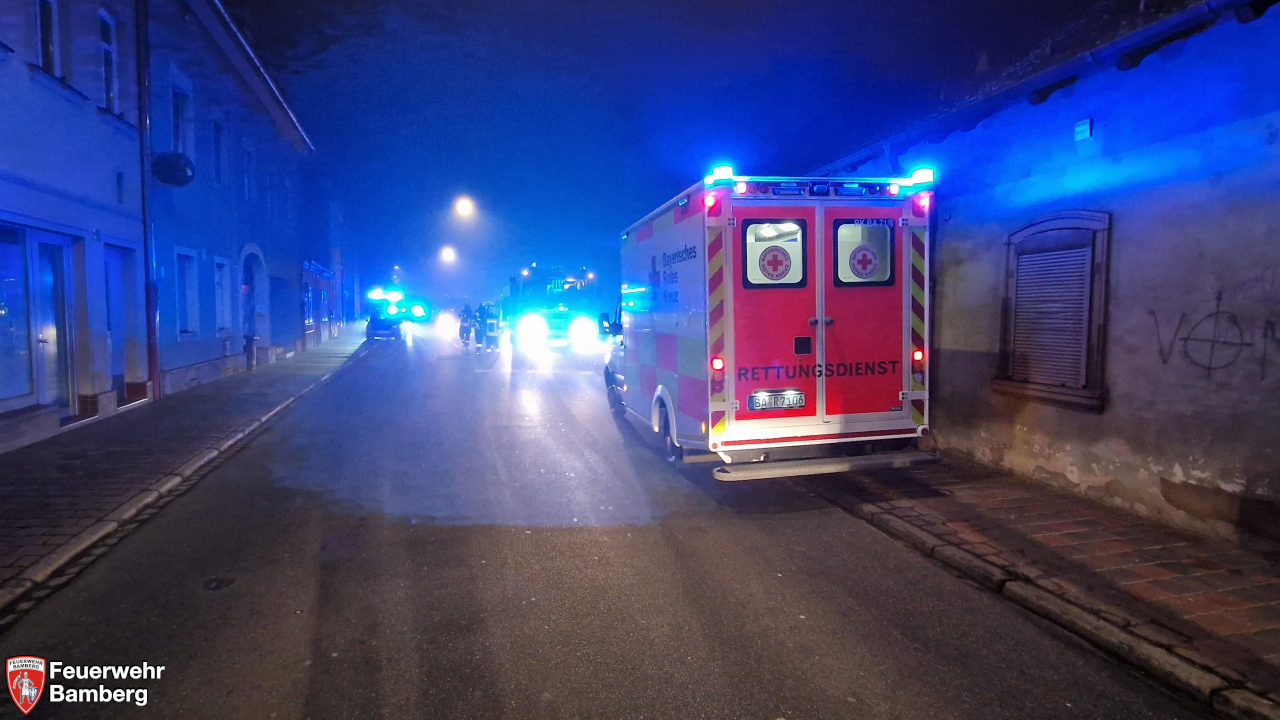 In den Morgenstunden wurde die Feuerwehr Bamberg in die Nürnberger Straße zu einem Zimmerbrand mit Personen in Gefahr alarmiert. Disponiert wurden die Ständige Wache, Löschgruppe 1 und Löschgruppe 4.