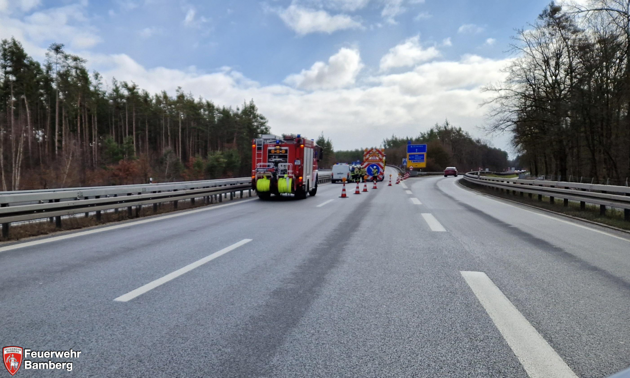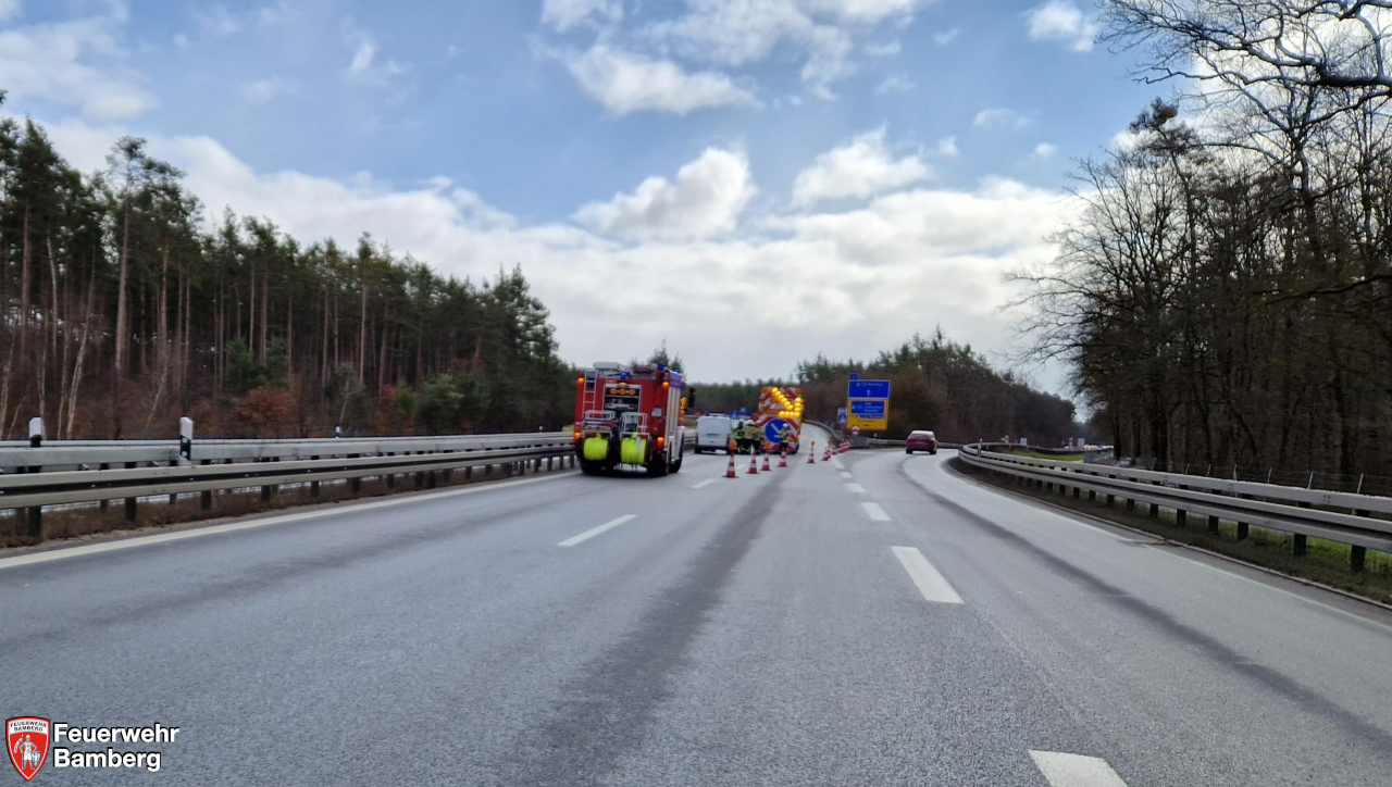 Am Vormittag wurde die Feuerwehr Bamberg auf dem Berliner Ring zur Verkehrsabsicherung alarmiert.