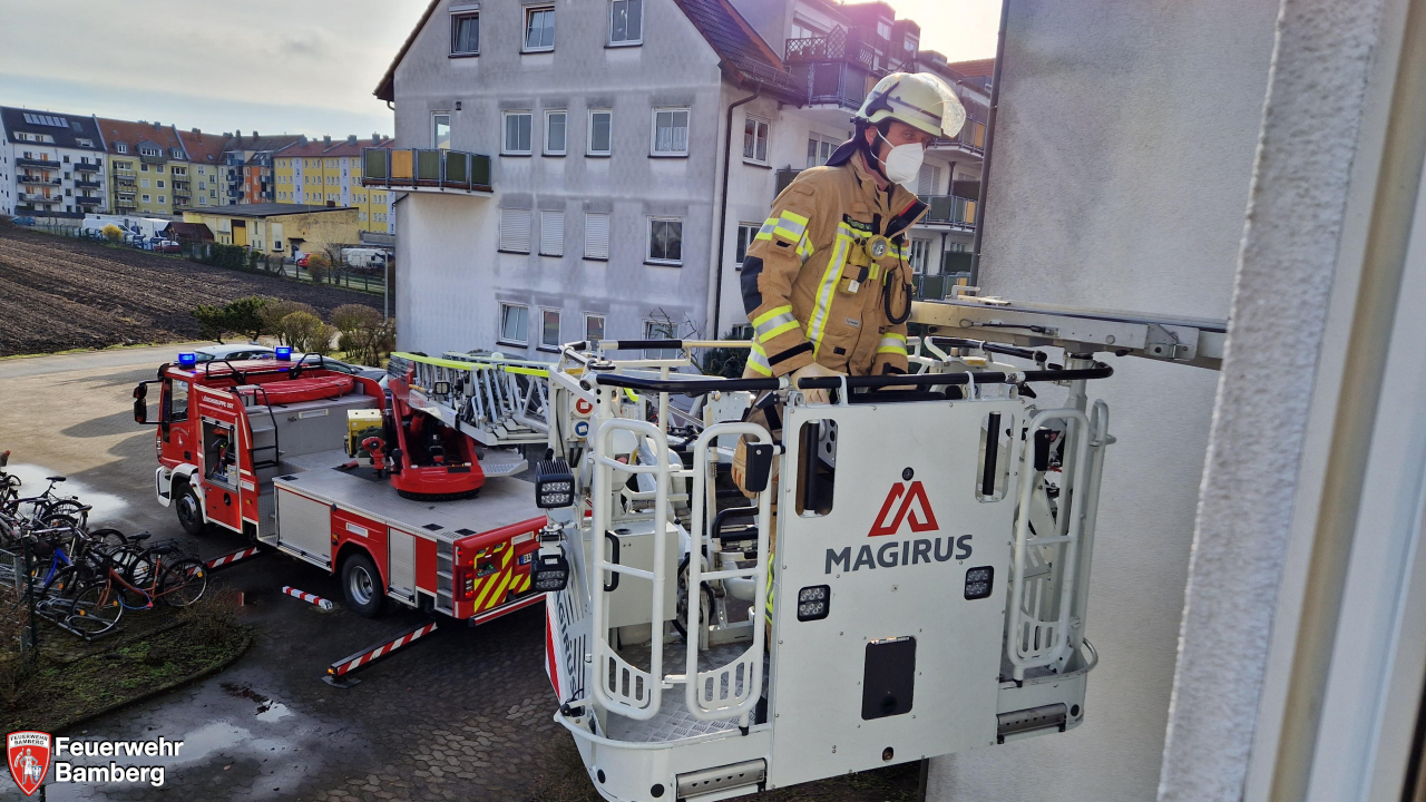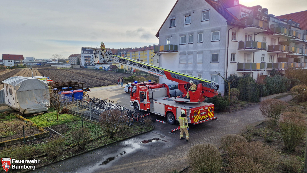 Kurz nach Schichtübernahme wurde die Feuerwehr Bamberg in die Brennerstraße zu einer Drehleiterrettung alarmiert. Eine Person war in der Wohnung gestürzt und wurde bereits notärztlich versorgt. Aufgrund des Verletztungsmusters war ein Transport durch das Treppenhaus nicht möglich.