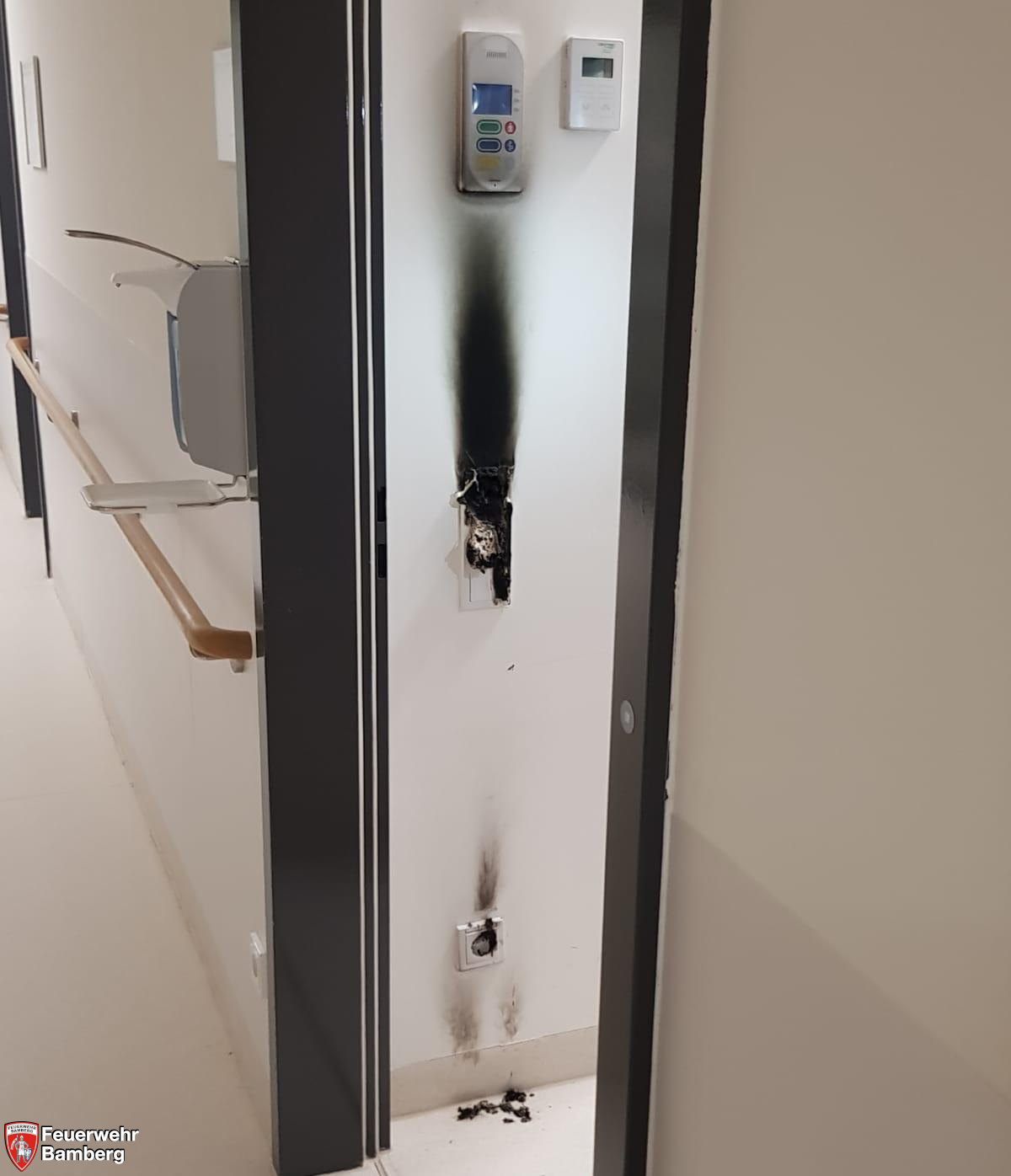Ein Haustechniker war bereits vor Ort und nahm die Kamerad:innen in Empfang. Er teilte mit, dass in einem Behandlungszimmer die Schaltereinheit "abgeraucht" sei. Es war deutlich Rauchgeruch feststellbar. Das Zimmer war stark verraucht. Personen waren glücklicherweise im Zimmer nicht anwesend. Während Fachpersonal die Elektroinstallation überprüfte, wurde ein Lüfter zur Entrauchung in Stellung gebracht.