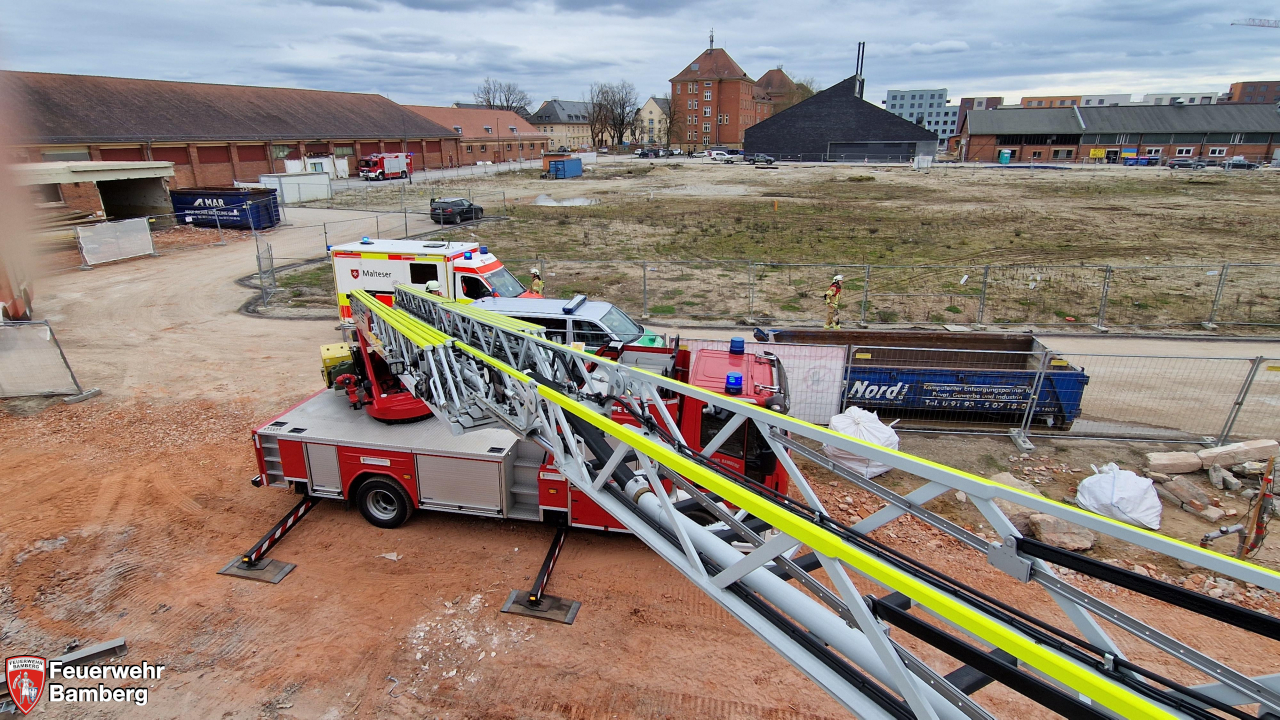 Am Nachmittag wurde die Feuerwehr Bamberg zu einer Personenrettung auf das Gelände der Lagarde Kaserne alarmiert. Bei Abbrucharbeiten stürzten Teile eines Dachstuhles ein und begruben zwei Personen unter den Trümmern.