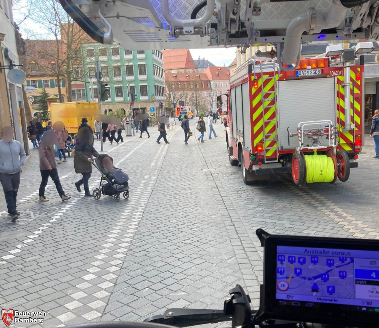 In der Mittagszeit wurde die Feuerwehr Bamberg in die Innenstadt zu einem vermeintlichen Zimmerbrand alarmiert. Passanten bemerkten stärkere Rauchentwicklung aus einem Fenster und alarmierten die Einsatzkräfte.