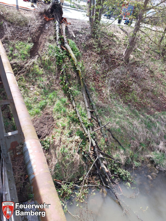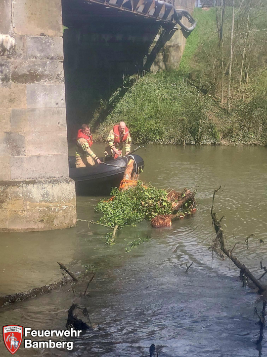 Die Feuerwehr Bamberg wurde gegen Mittag in die Heinrich-Semlinger-Straße nach Gaustadt zu einem im Wasser treibenden Baum alarmiert.