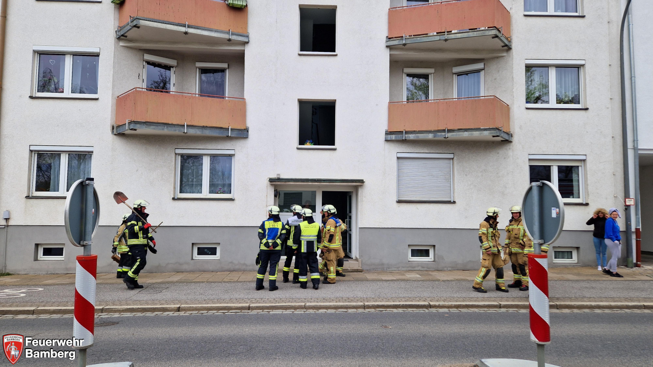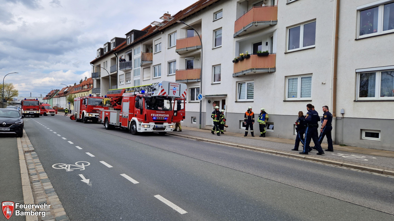 Gegen Mittag wurde die Feuerwehr Bamberg in die äußere Geisfelder Straße zu einem gemeldeten Zimmerbrand alarmiert. Nachbarn hatten Rauchgeruch im Treppenhaus wahrgenommen und bei der betreffenden Wohnung geklopft und geklingelt. Niemand öffnete.