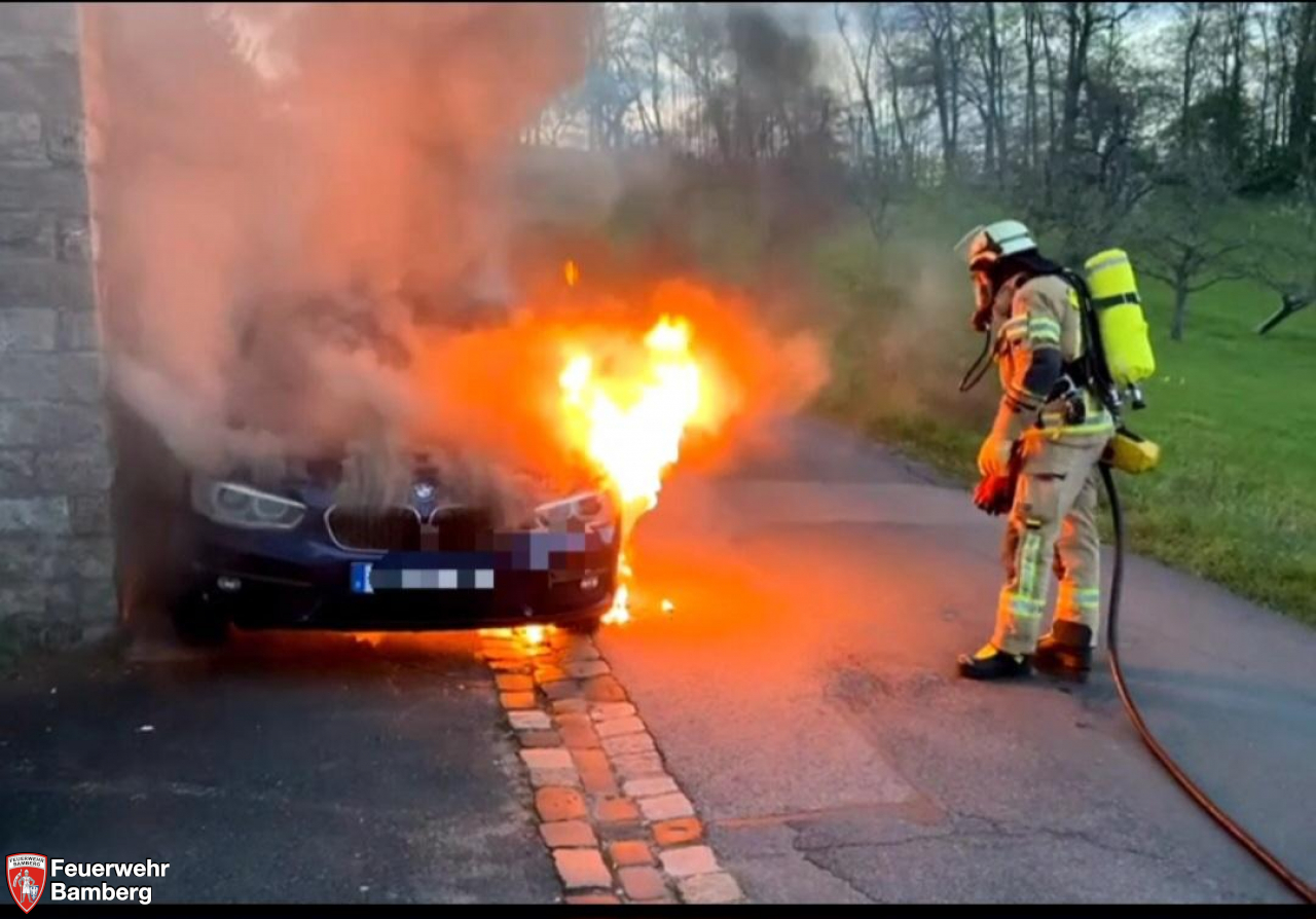 Am Abend wurde die Feuerwehr Bamberg ins Berggebiet zu einem Pkw-Brand alarmiert.
