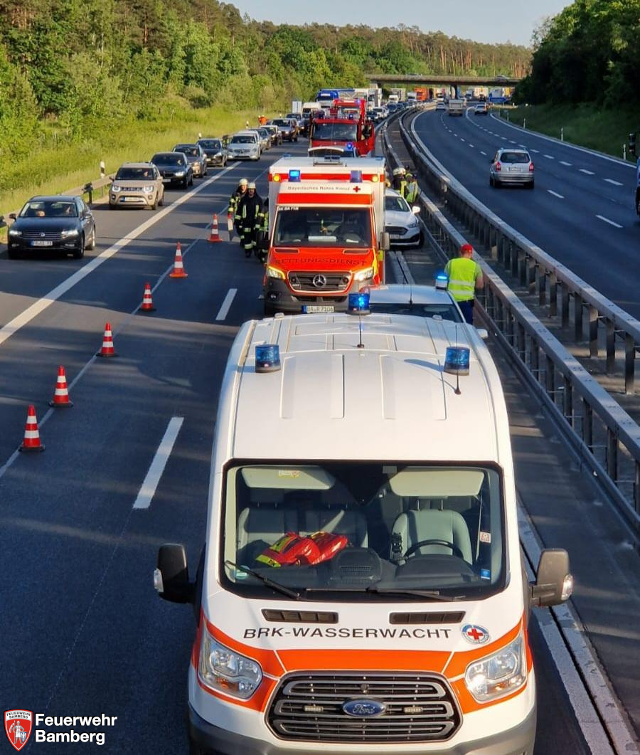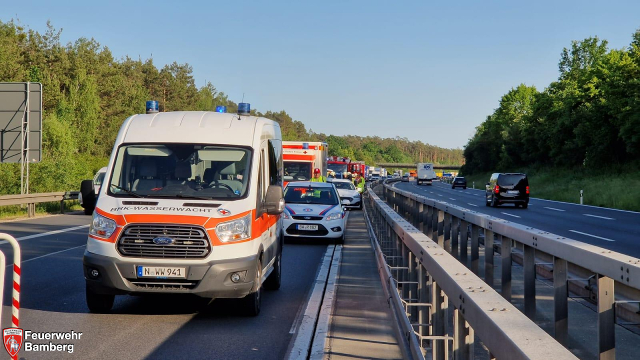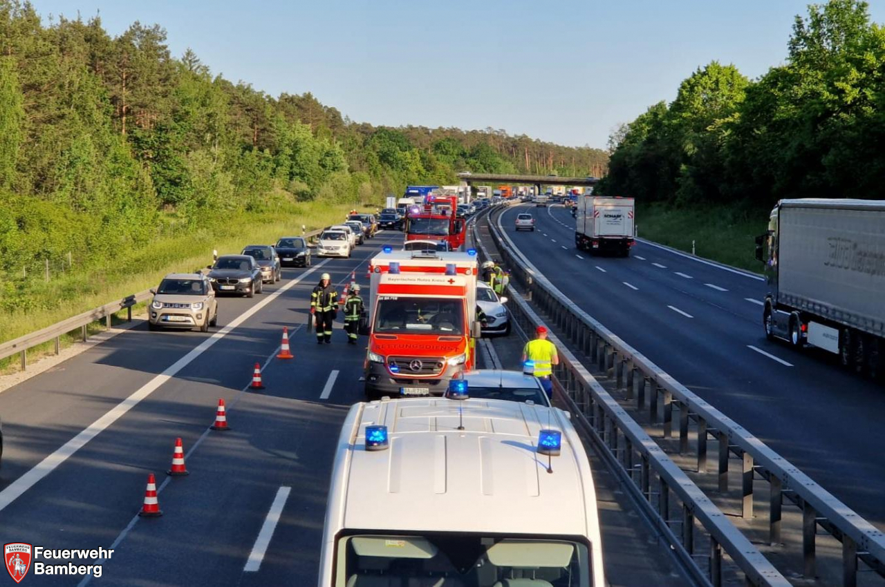 Am Abend wurde die Feuerwehr Bamberg auf die A73 Fahrtrichtung Suhl zu einem Verkehrsunfall mit mehreren beteiligten Fahrzeugen alarmiert. Unter den Beteiligten gab es Leichtverletzte, mindestens eine Person konnte ihr Fahrzeug nicht selbstständig verlassen.