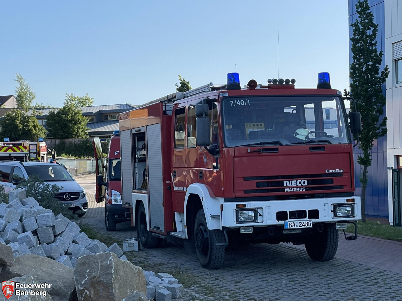 Am Sonntagmorgen wurde die Feuerwehr Bamberg zu einer ausgelösten Brandmeldeanlage zum Klinikum am Bruderwald alarmiert. Noch auf der Alarmfahrt lösten immer mehr Rauchmelder in der Anlage aus. Schnell war jedoch klar, dass es sich um eine geplatzte Heißwasserleitung handelte und es konnte in Richtung eines Brandereignisses Entwarnung gegeben werden.