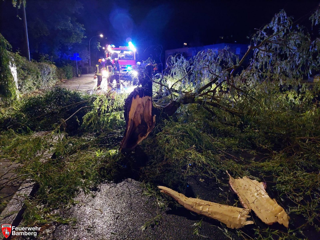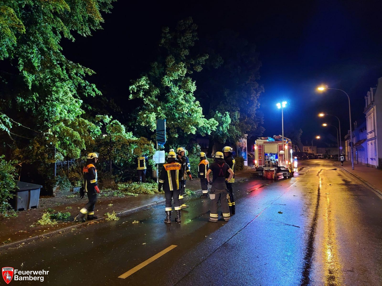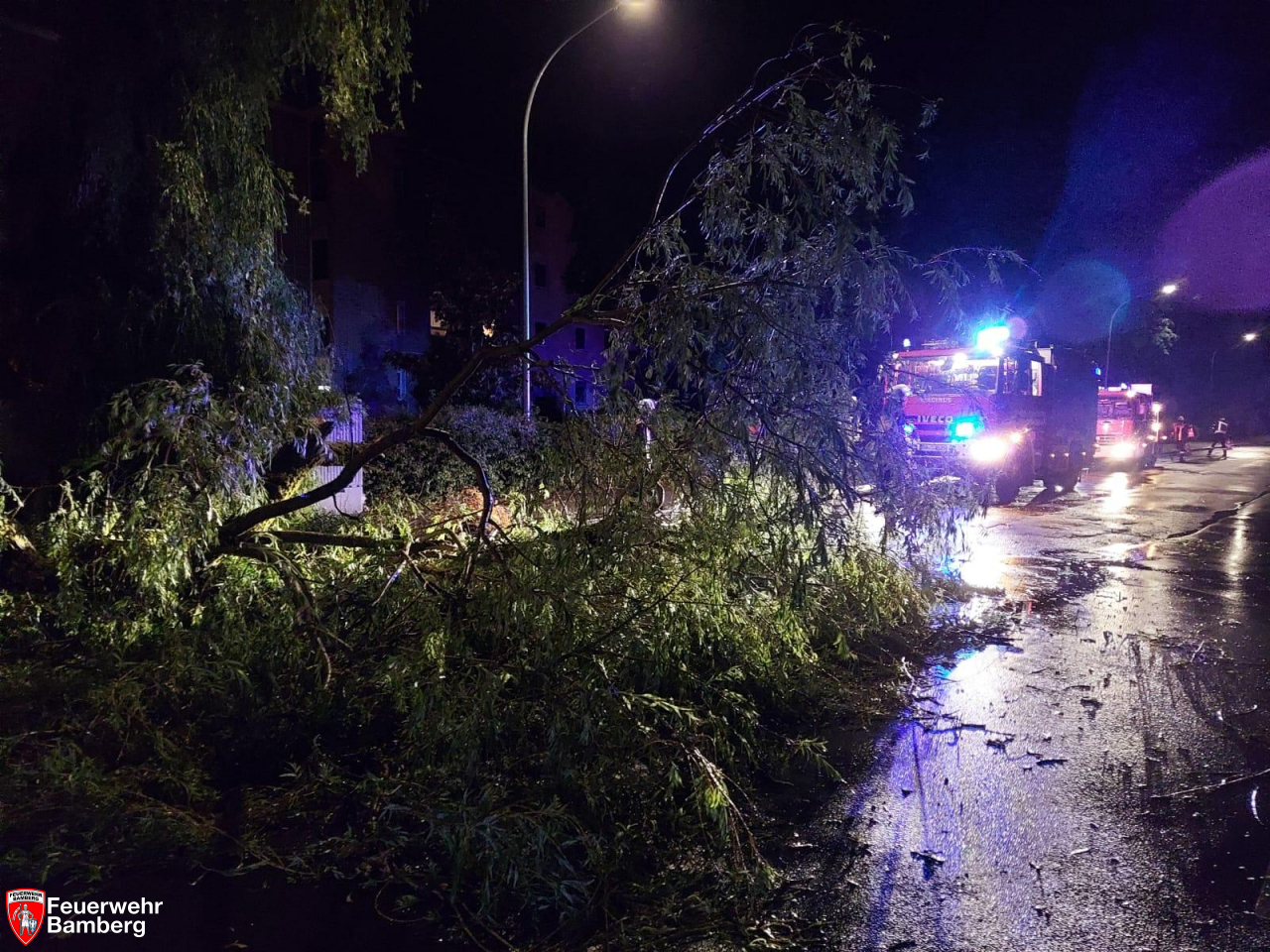 In der Nacht zum Mittwoch fegte ein heftiges Unwetter über Bamberg und die Randbezirke hinweg. Dadurch kam es bis ca. 3:30 Uhr morgens zu einem hohen Einsatzaufkommen für die Kameradinnen und Kameraden der Feuerwehr Bamberg.