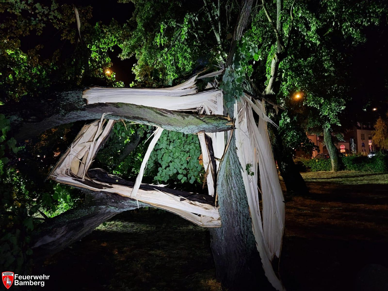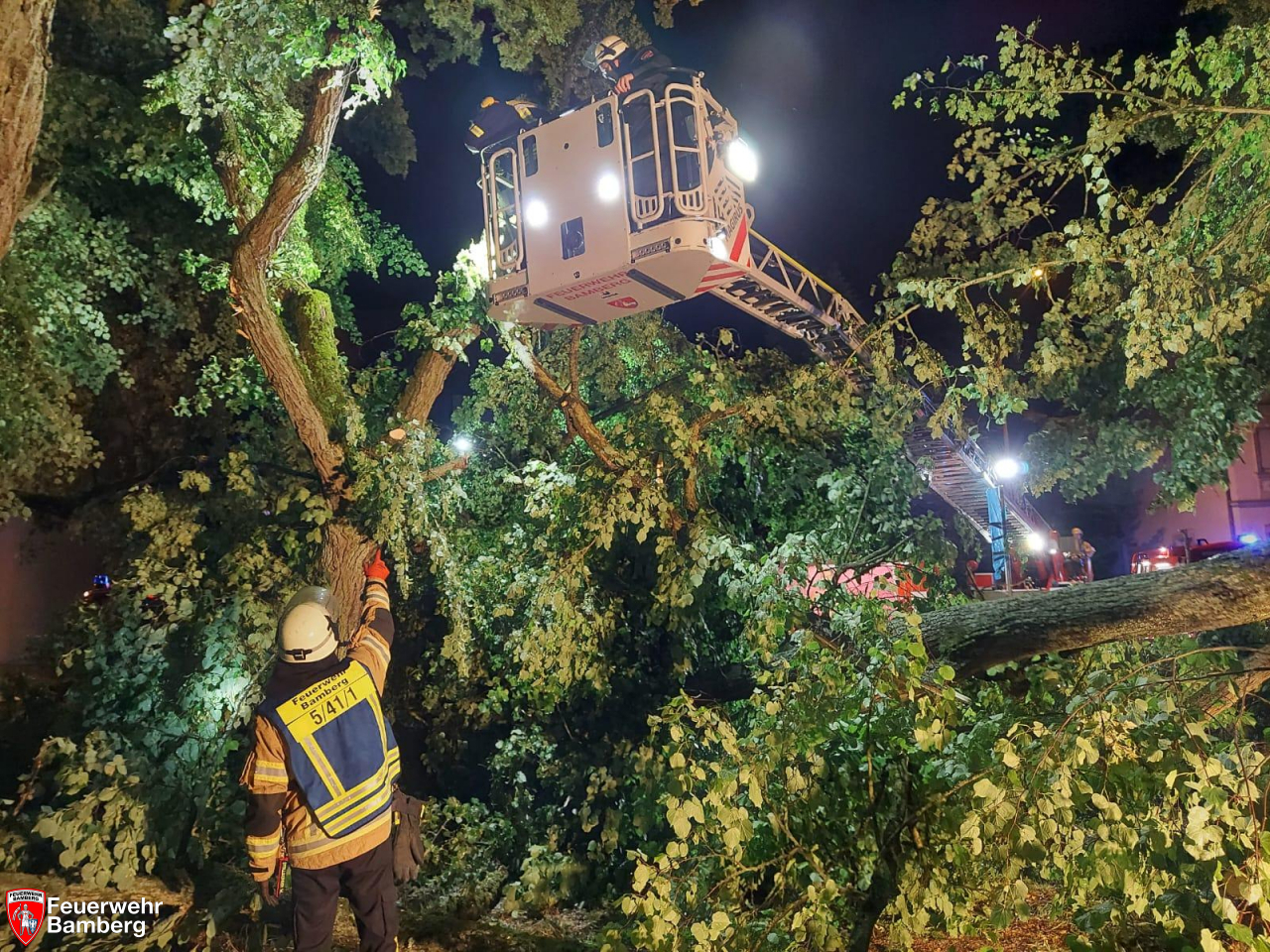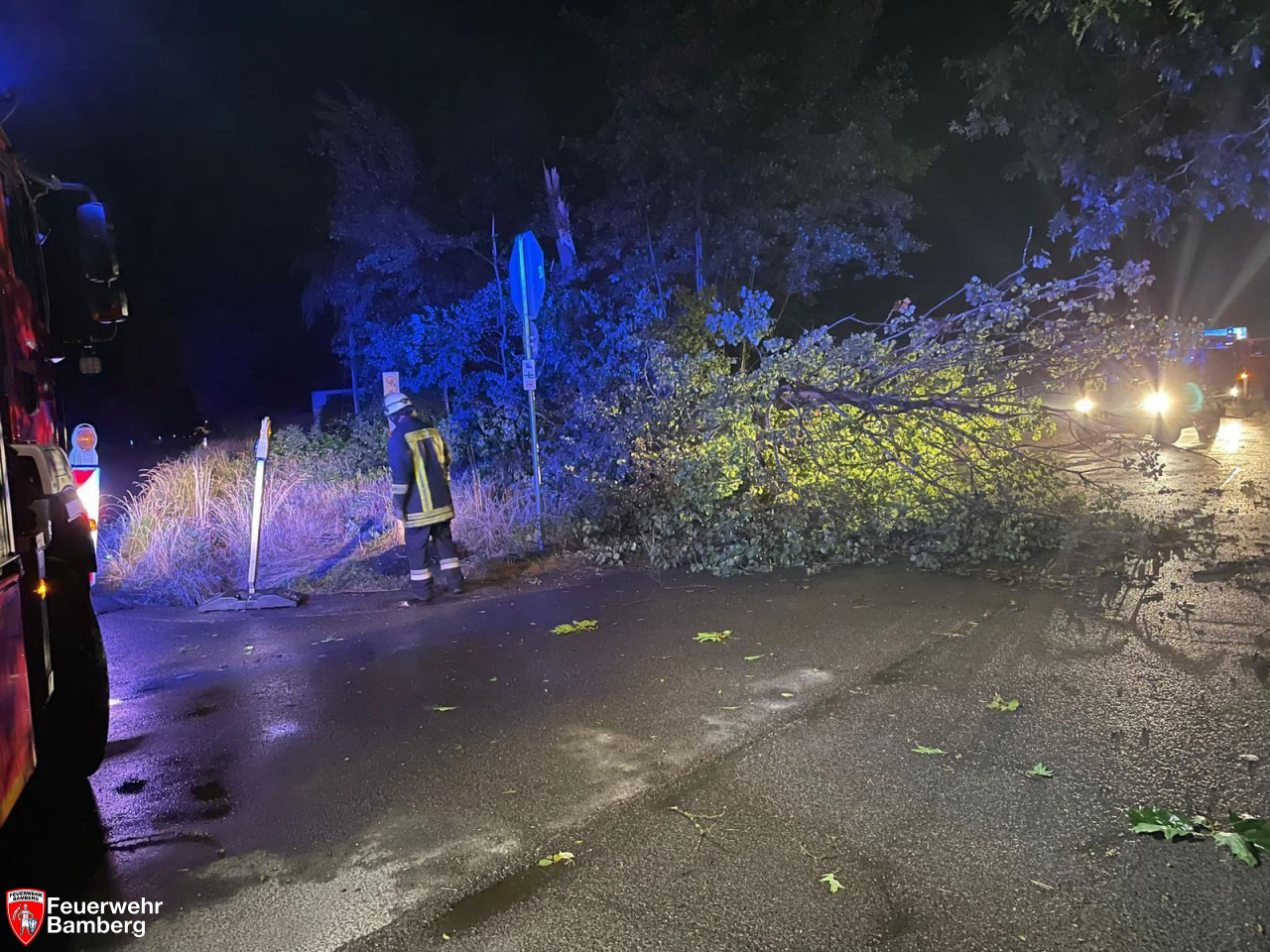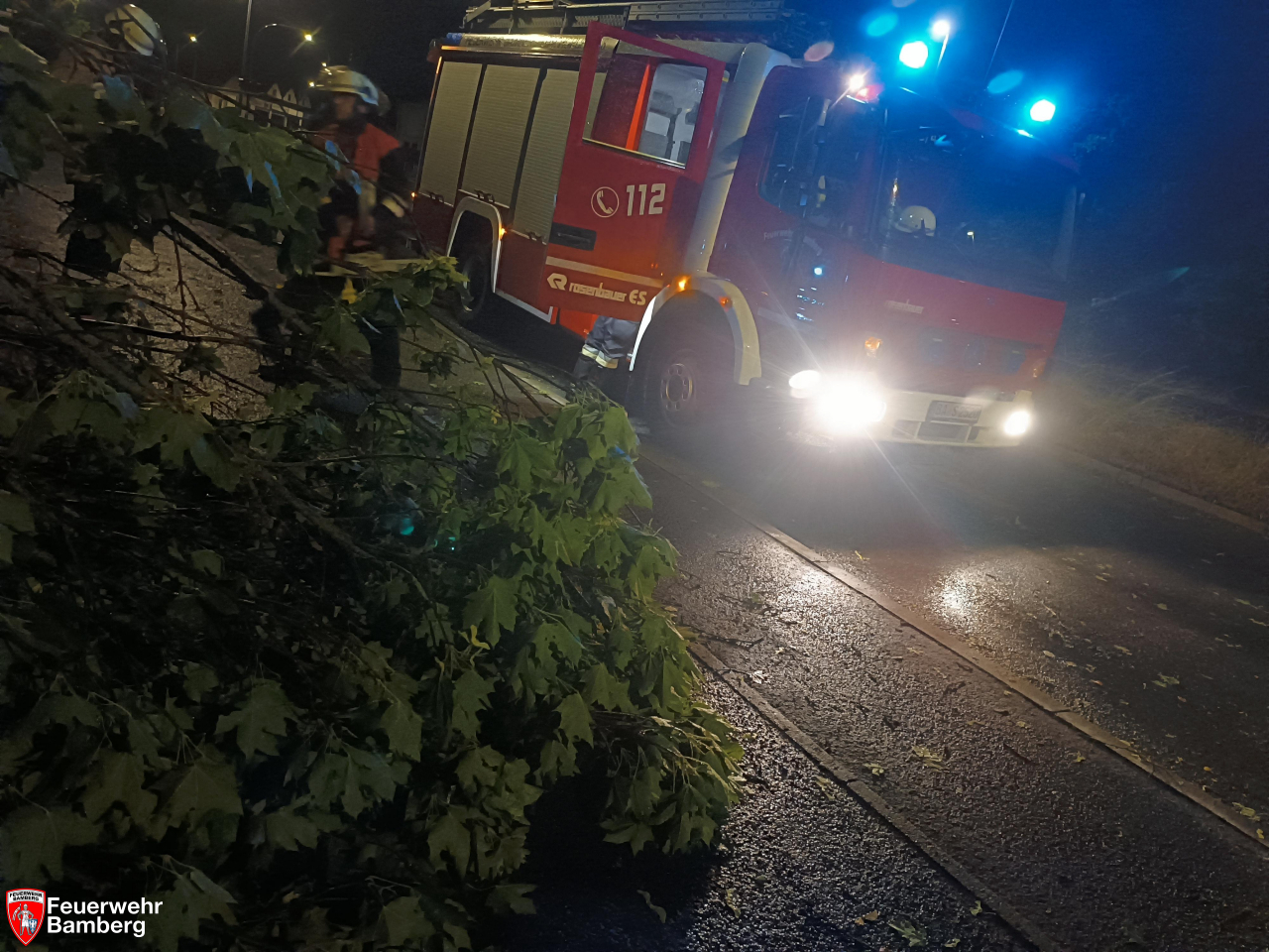 In der Nacht zum Mittwoch fegte ein heftiges Unwetter über Bamberg und die Randbezirke hinweg. Dadurch kam es bis ca. 3:30 Uhr morgens zu einem hohen Einsatzaufkommen für die Kameradinnen und Kameraden der Feuerwehr Bamberg.