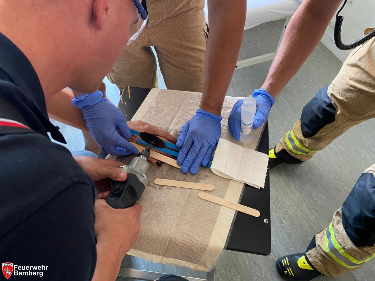 Bei einer dortigen Patientin sollte ein Ring vom Finger entfernt werden. Der Finger schwoll dermaßen an, dass die Blutversorgung des Fingers nicht mehr gegeben war und der Ring möglichst schnell entfernt werden musste. Die Mittel des Chirurgen waren an die Grenzen gelangt, weshalb man die Kameraden bat mit eigenem Equipment in die Praxis zu kommen.