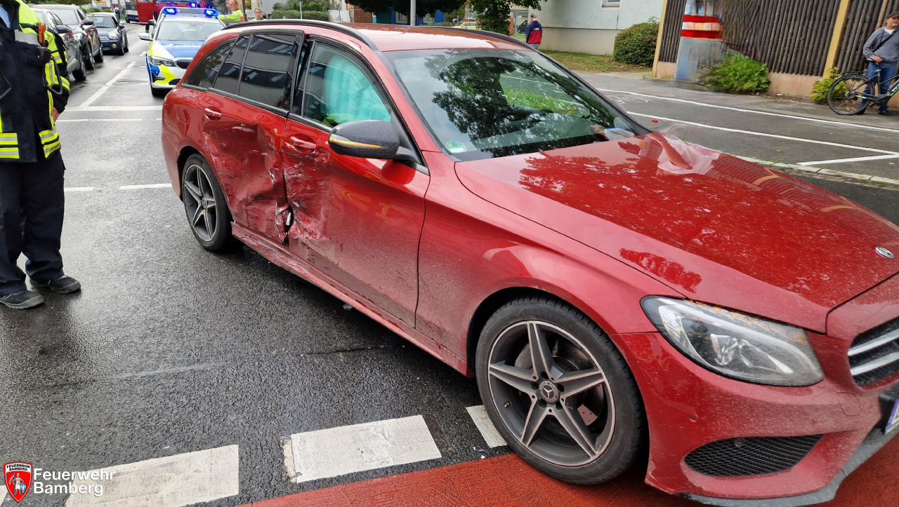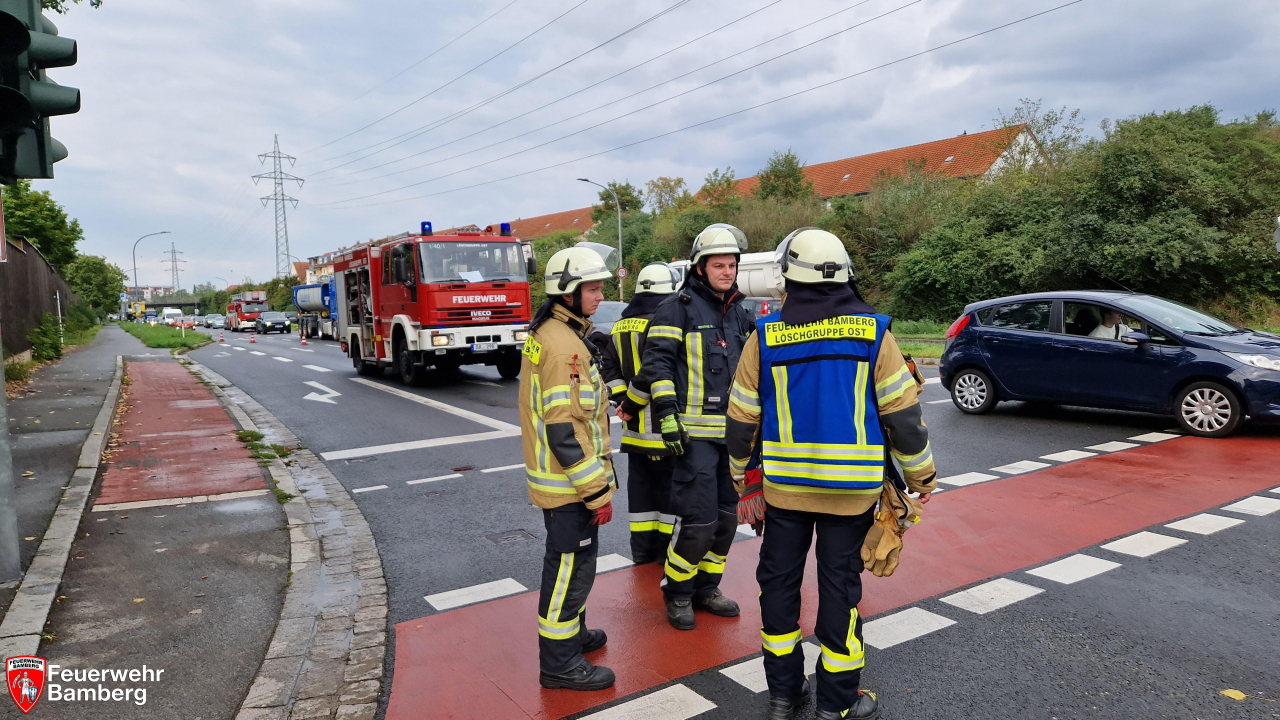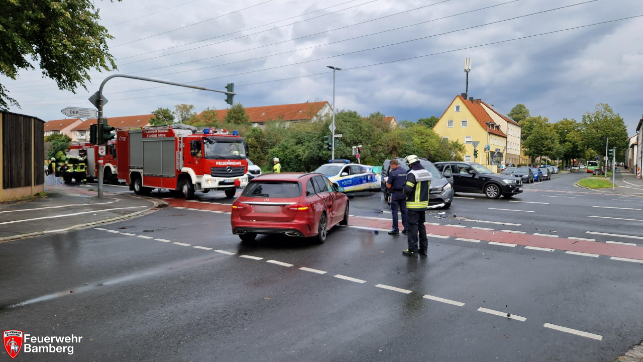 Am Nachmittag ereignete sich im Kreuzungsbereich Berliner Ring zur Pödeldorfer Straße ein Verkehrsunfall mit zwei beteiligten Fahrzeugen. Da wenigstens eines der Fahrzeuge mit einem automatischen Notfallalarmierungssystem ausgestattet war und einen Notruf zu einer Zentrale absetzte, wurde die Feuerwehr Bamberg zum VU(eCall ohne Spracherwiderung) alarmiert. Vermutlich waren alle Unfallbeteiligten aus ihren Fahrzeugen bereits ausgestiegen, weshalb keine Sprachverständigung zwischen der Notrufzentrale und den Insassen zustande kam. Bis zum Eintreffen der Rettungskräfte an der Einsatzstelle war zunächst unklar, ob Personen im Fahrzeug eingeschlossen oder verletzt waren.