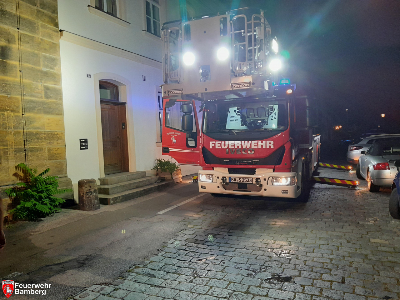 Um auch kleinste Glutnester ausschließen zu können, wurde die Drehleiter nachgefordert und die Traufe mit der Wärmebildkamera gescannt. Bis auf erwärmtes Mauerwerk konnte glücklicherweise nichts festgestellt werden.