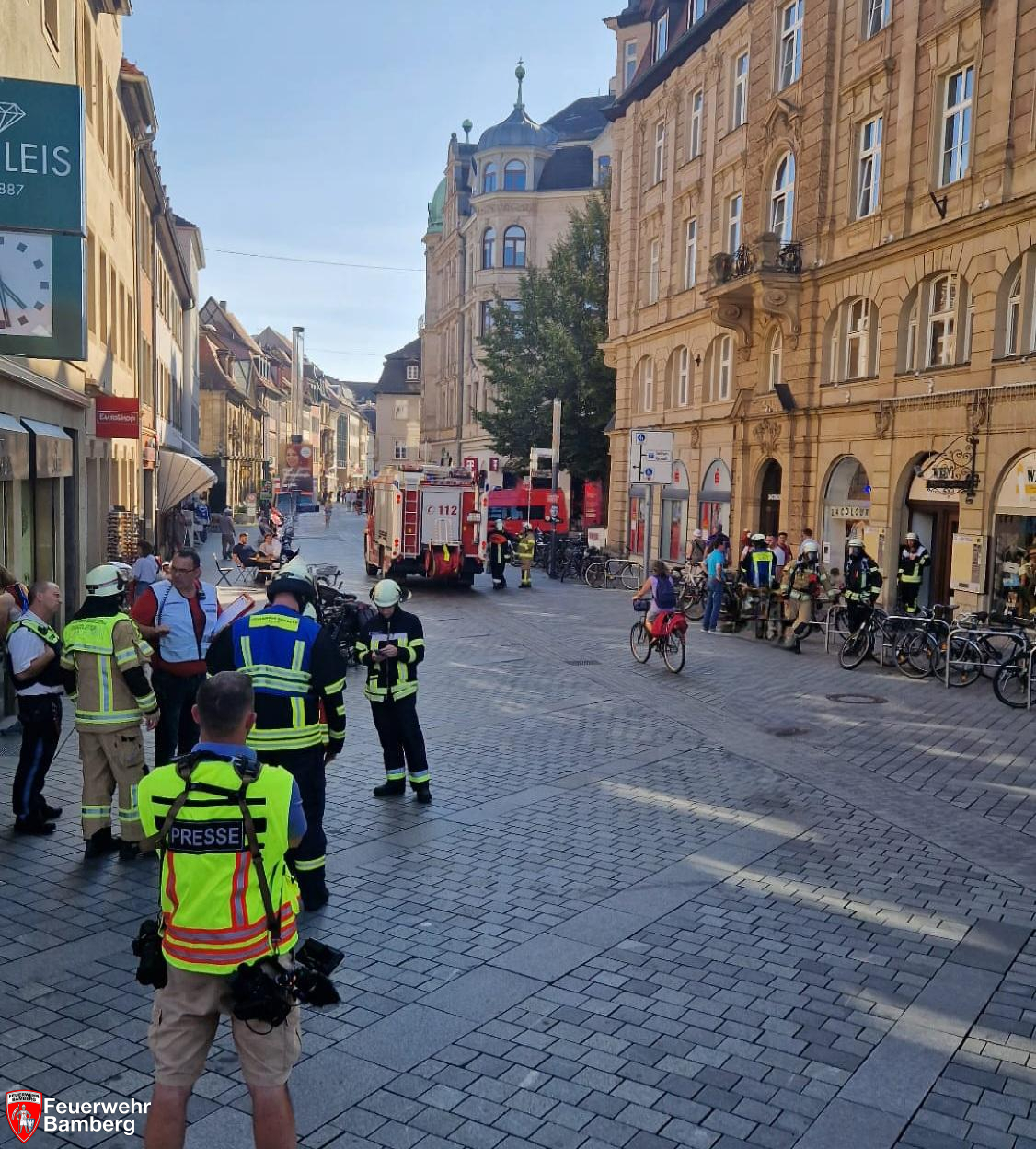 Zusammen mit Mitarbeitern der Stadtwerke Bamberg Abteilung Energieversorgung begab sich ein Trupp der Feuerwehr unter Atemschutz mit Gasmessgeräten auf Erkundung ins Gebäude. Es wurde vom Keller bis unters Dach alles geprüft, allerdings konnten keinerlei Feststellungen gemacht werden.