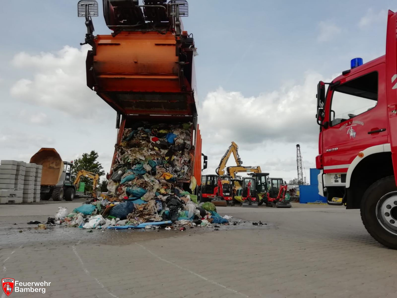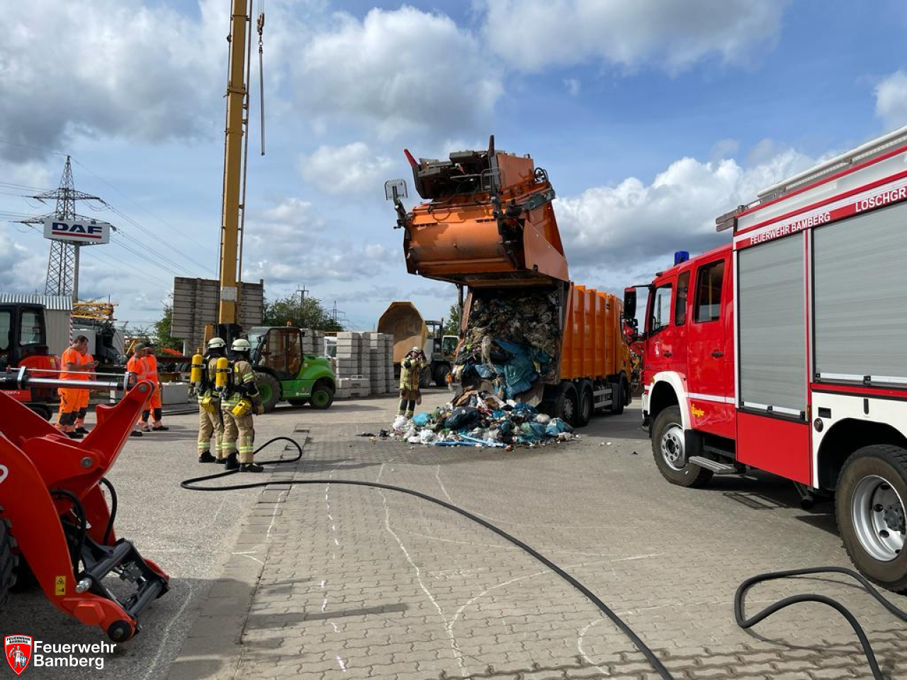 Um 12:43 wurde die Feuerwehr Bamberg in den Bamberger Norden zu einem beginnenden Lkw-Brand alarmiert. Mitarbeitende des Bamberg Service meldeten Rauch- und Flammenentwicklung aus dem Laderaum ihres Müllentsorgungsfahrzeugs. Bis zum Eintreffen der Einsatzkräfte wurde bereits die Laderaumluke geöffnet und mit dem Abladen des brennenden Unrats auf dem Gelände einer ansässigen Firma begonnen.