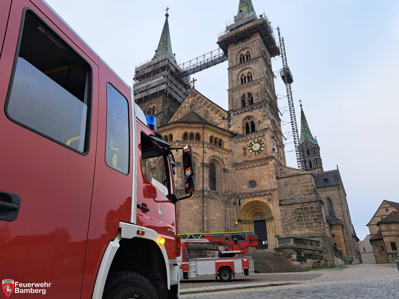 Am Vormittag wurde die Feuerwehr Bamberg zum Diözesanmuseum am Domplatz zu einer ausgelösten Brandmeldeanlage alarmiert. Ein Eingreifen seitens der alarmierten Kräfte war nicht notwendig, wie die Erkundung ergab. Staubentwicklung bei Bauarbeiten hatte die Anlage ausgelöst.