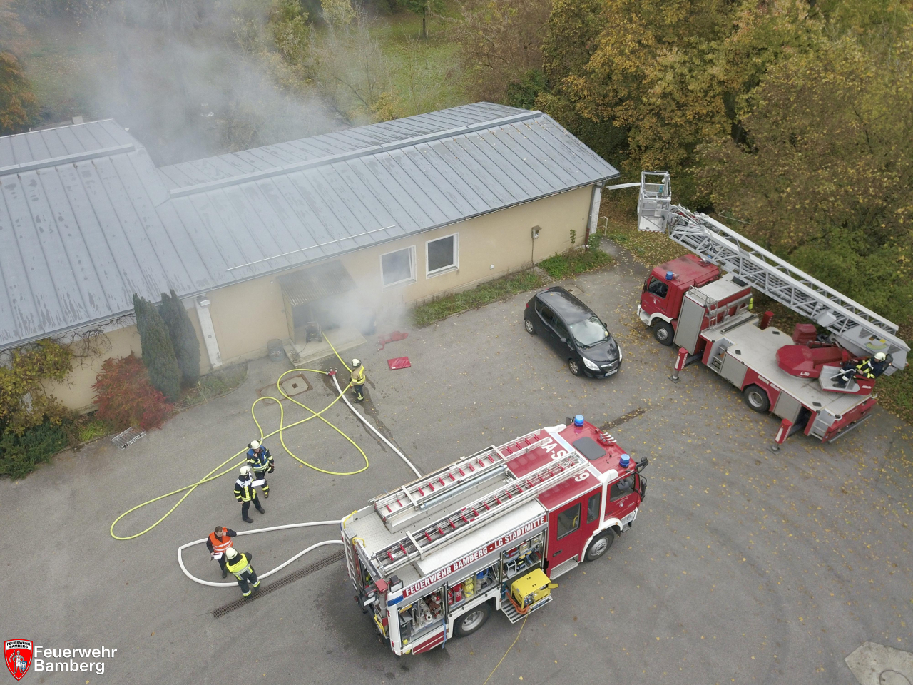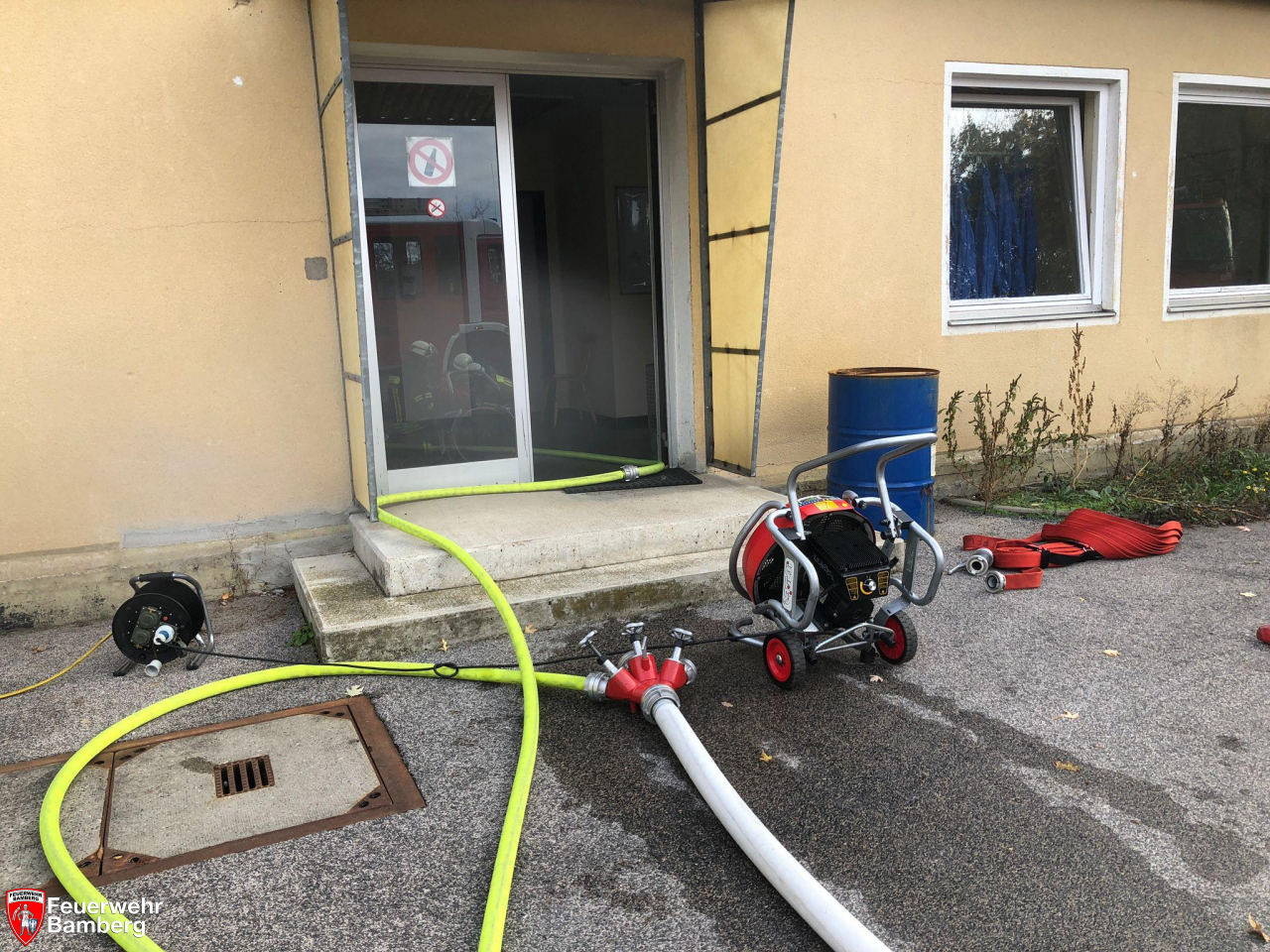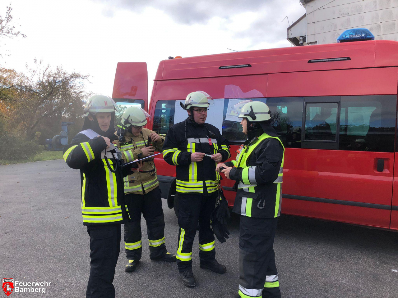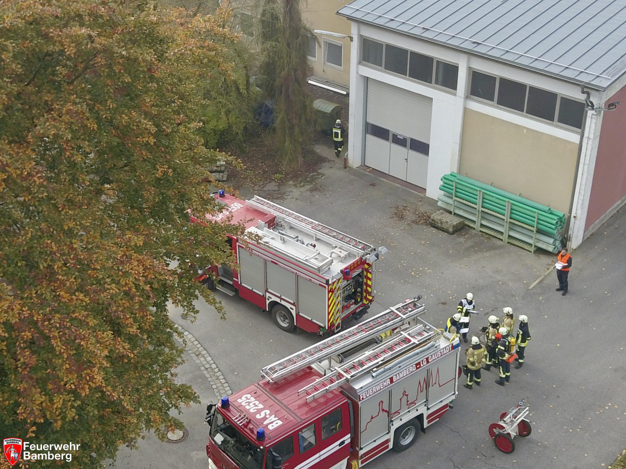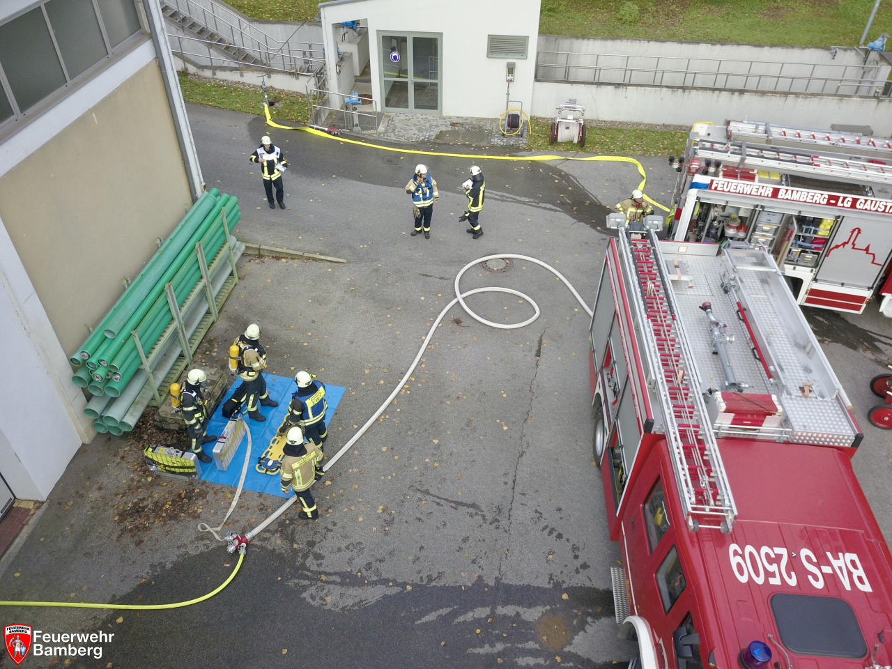 In den Morgenstunden wurde die Feuerwehr Bamberg im Zuge einer Alarmübung in das Klärwerk in der Rheinstraße alarmiert. Dort wurde Rauchentwicklung aus einem Gebäude gesichtet, so die simulierte Übungslage. Zudem wurde angenommen, dass sich die Ständige Wache in einem Paralleleinsatz befindet, weshalb die Erstalarmierung die Löschgruppen Nord und Stadtmitte vorgibt.