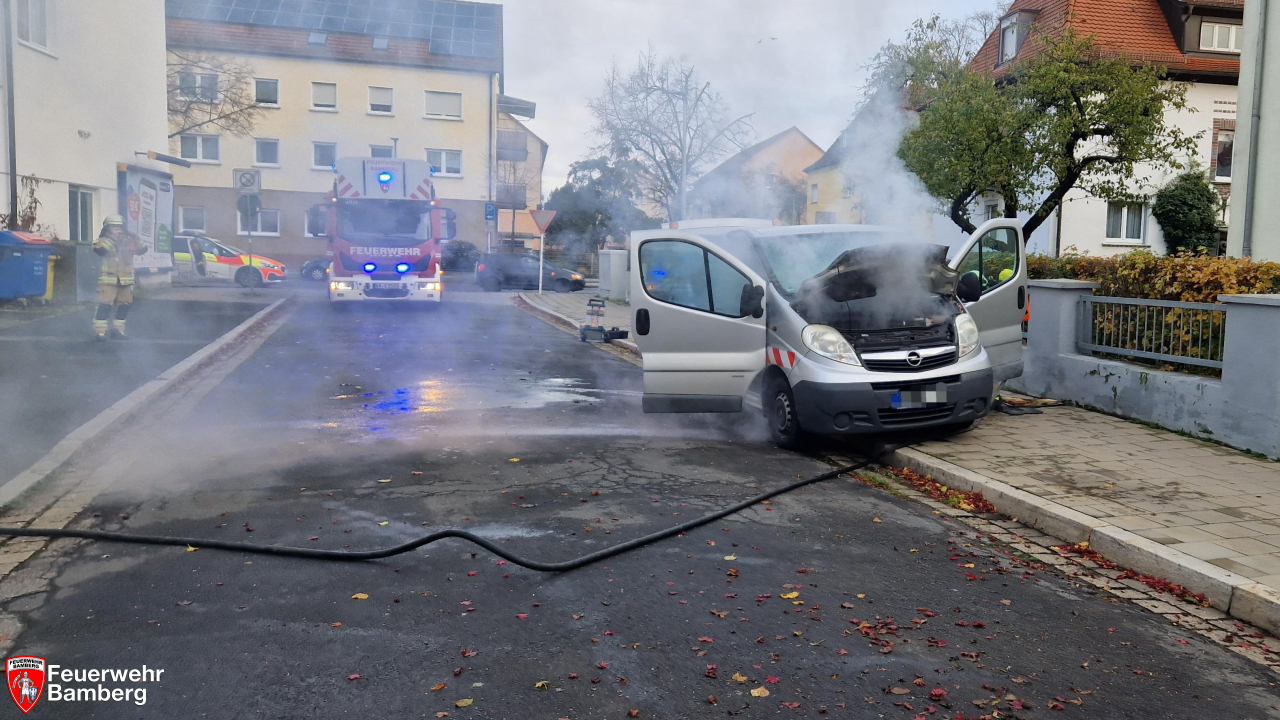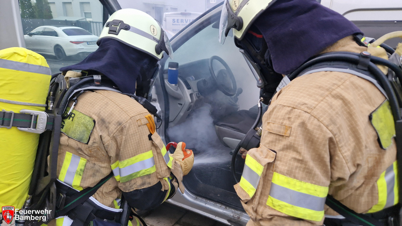 Am Morgen wurde die Feuerwehr Bamberg zu einem Pkw-Brand in den Bamberger Osten alarmiert. Der Besitzer des Fahrzeugs bemerkte beim Einsteigen Rauchentwicklung im Innenraum und unter dem Fahrzeug. Bis zum Eintreffen der Einsatzkräfte fand er aber noch die Zeit alle wertvollen Gerätschaften aus dem Auto auszuladen.