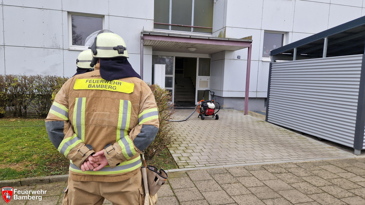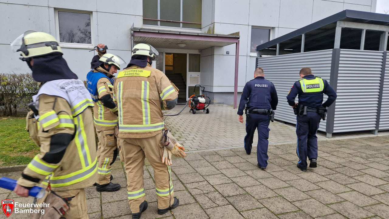 Gegen Mittag wurde die Feuerwehr Bamberg mit einer hohen Anzahl an Einsatzkräften zu einem Brand im Hochhaus mit Personen in Gefahr alarmiert. Nachbarn hörten das Piepsen eines Rauchwarnmelders aus der Wohnung und machten Rauchwahrnehmungen im gesamten oberen Treppenhaus.
